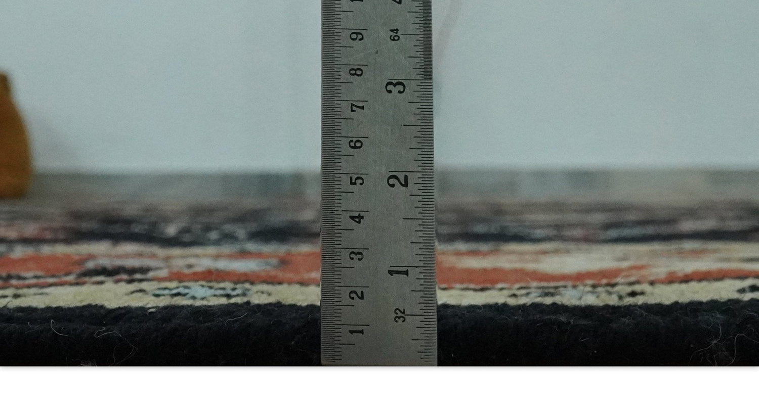 Expertly handcrafted, this Traditional Oriental wool rug features a harmonious blend of black, rust, and beige. Its intricate hand-knotted design adds a touch of elegance. Custom-made with high-quality wool, this rug is not only visually appealing but also durable and long-lasting.