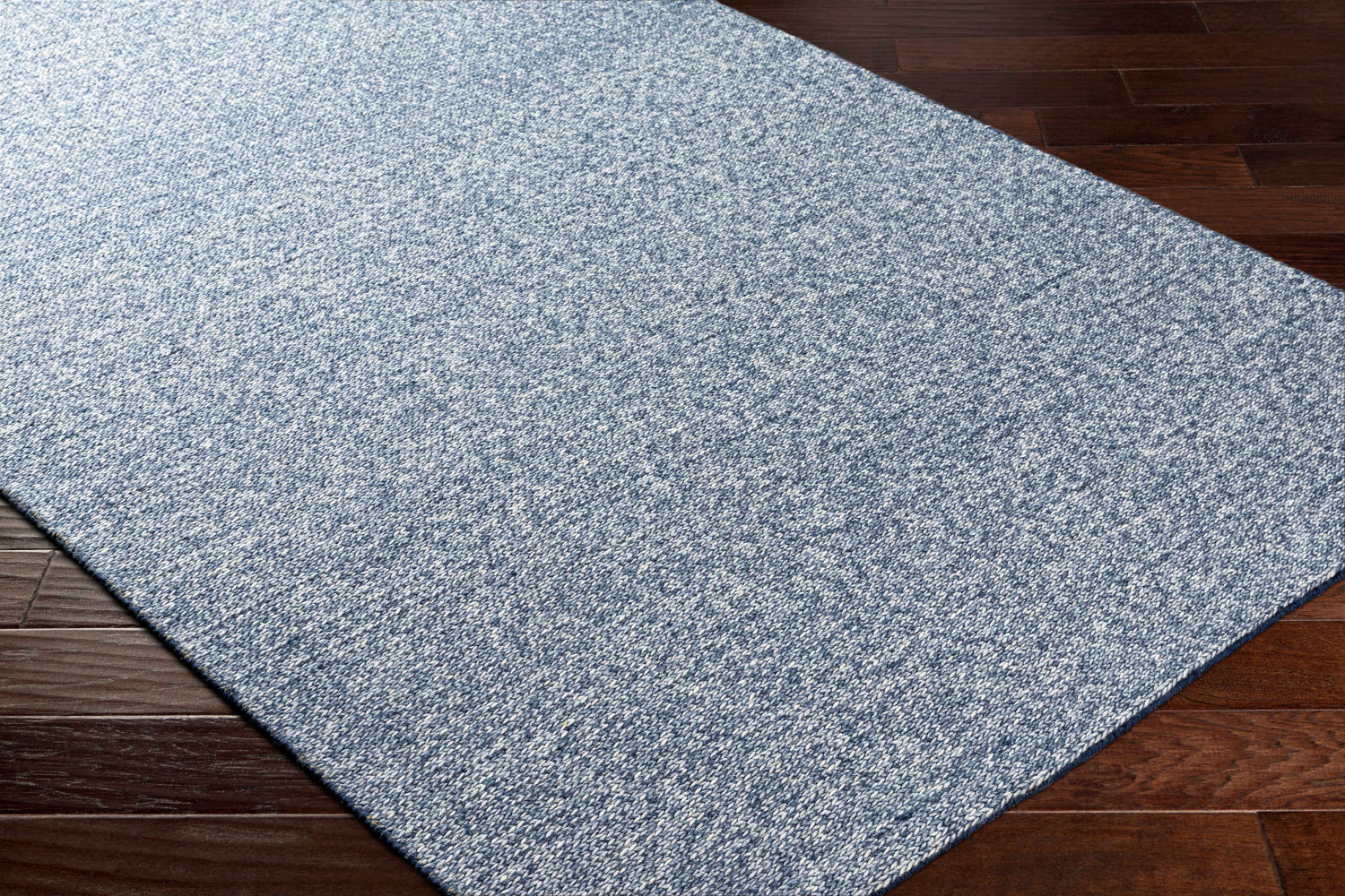 Create a modern look in your home with this Alyra Blue Solid Area Rug. Hand-woven in India with 100% wool, the no-pile design gives this rug a unique texture and feel. To ensure longevity, we recommend using it with a rug pad (not included). Whether you're looking to add subtle texture to your living room or give an old room an update, this Alyra Blue Solid Area Rug is perfect for any space.