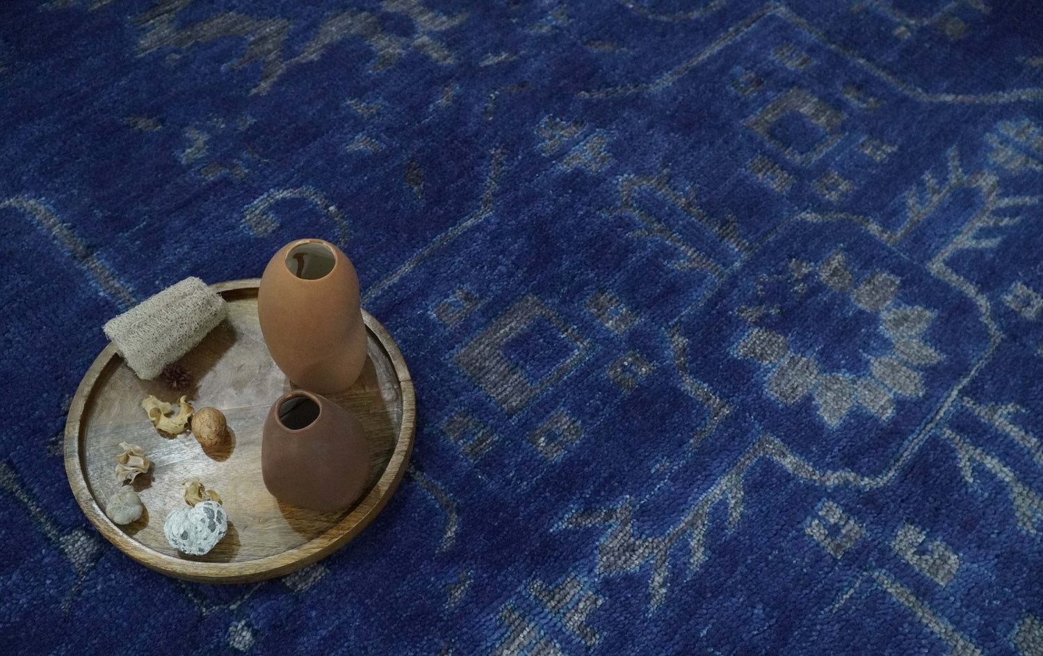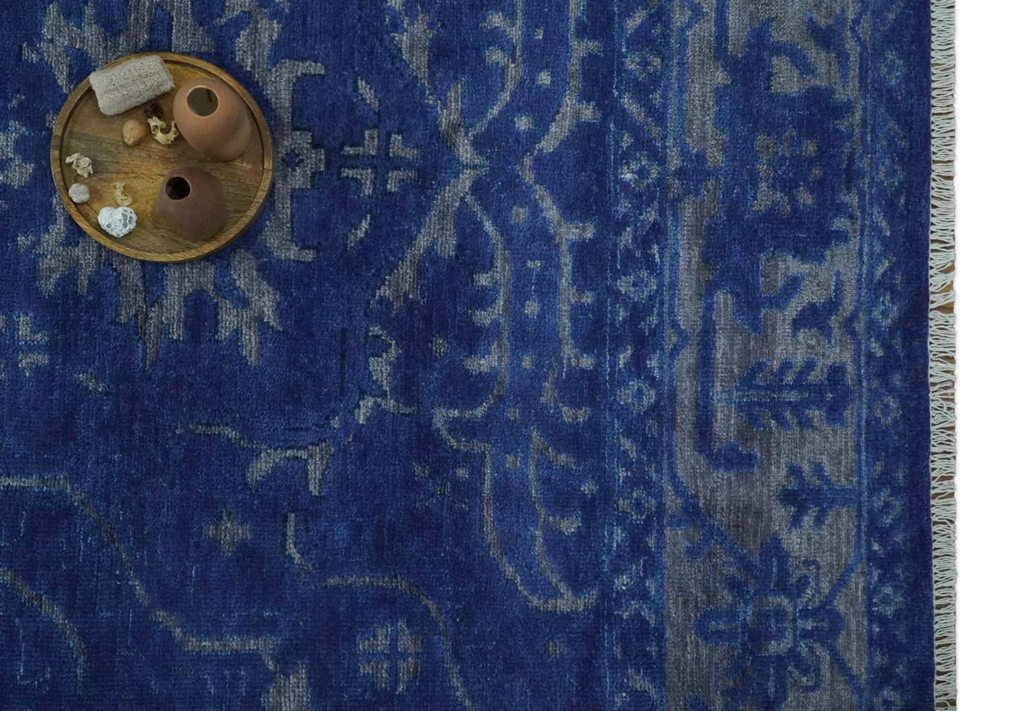 Blue and Gray Hand knotted Oriental Oushak Multi Size wool Area Rug