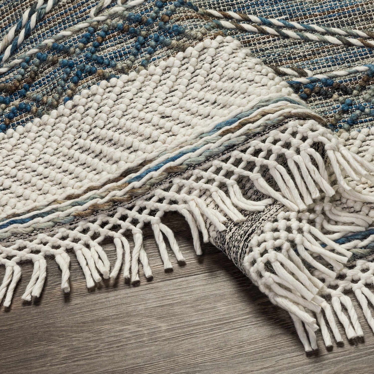 Blue Bogwalk Wool Blend Braided Tassel Area Rug - Clearance