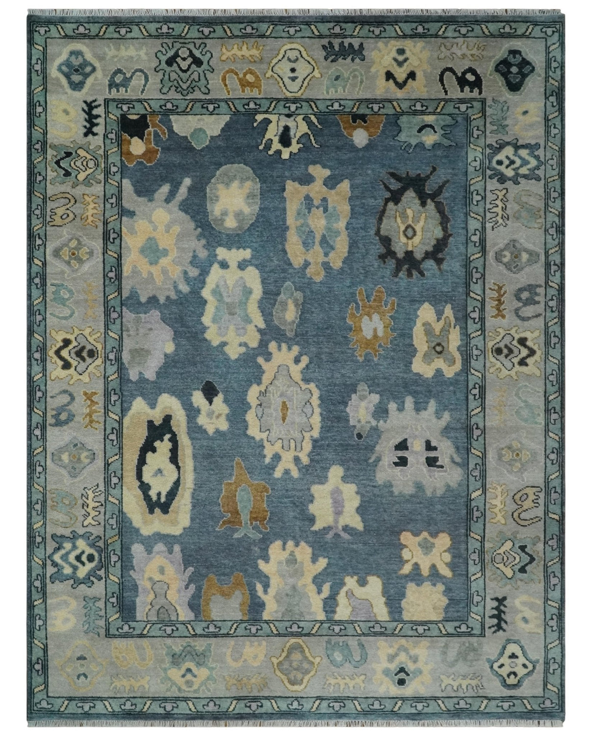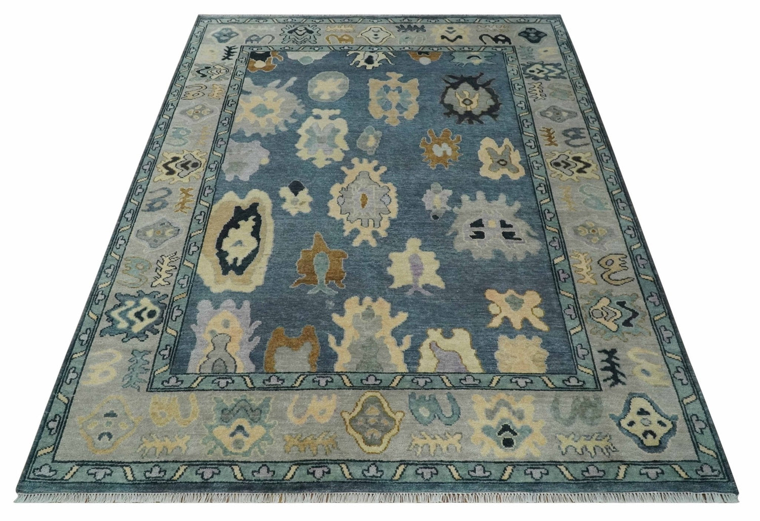 Blue, Silver and Beige Hand knotted Traditional Oushak Multi Size Wool Area Rug