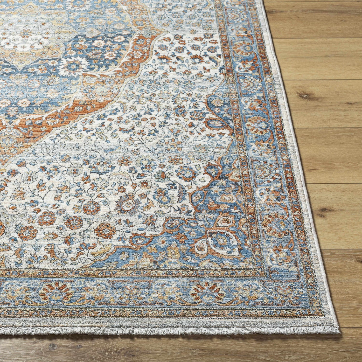The Bojan Area Rug is the perfect piece to add a touch of timeless elegance to any room. Woven with polyester, this updated traditional style rug features a low pile that is ideal for high traffic areas. With its delicate fringe detail, this hand-knotted rug will bring warmth and sophistication to your home decor. Crafted in Turkey with expert precision, it is sure to become the centerpiece of any living space. For extra comfort and durability, we recommend using a rug pad beneath it. Make a statement with this stunning piece today!