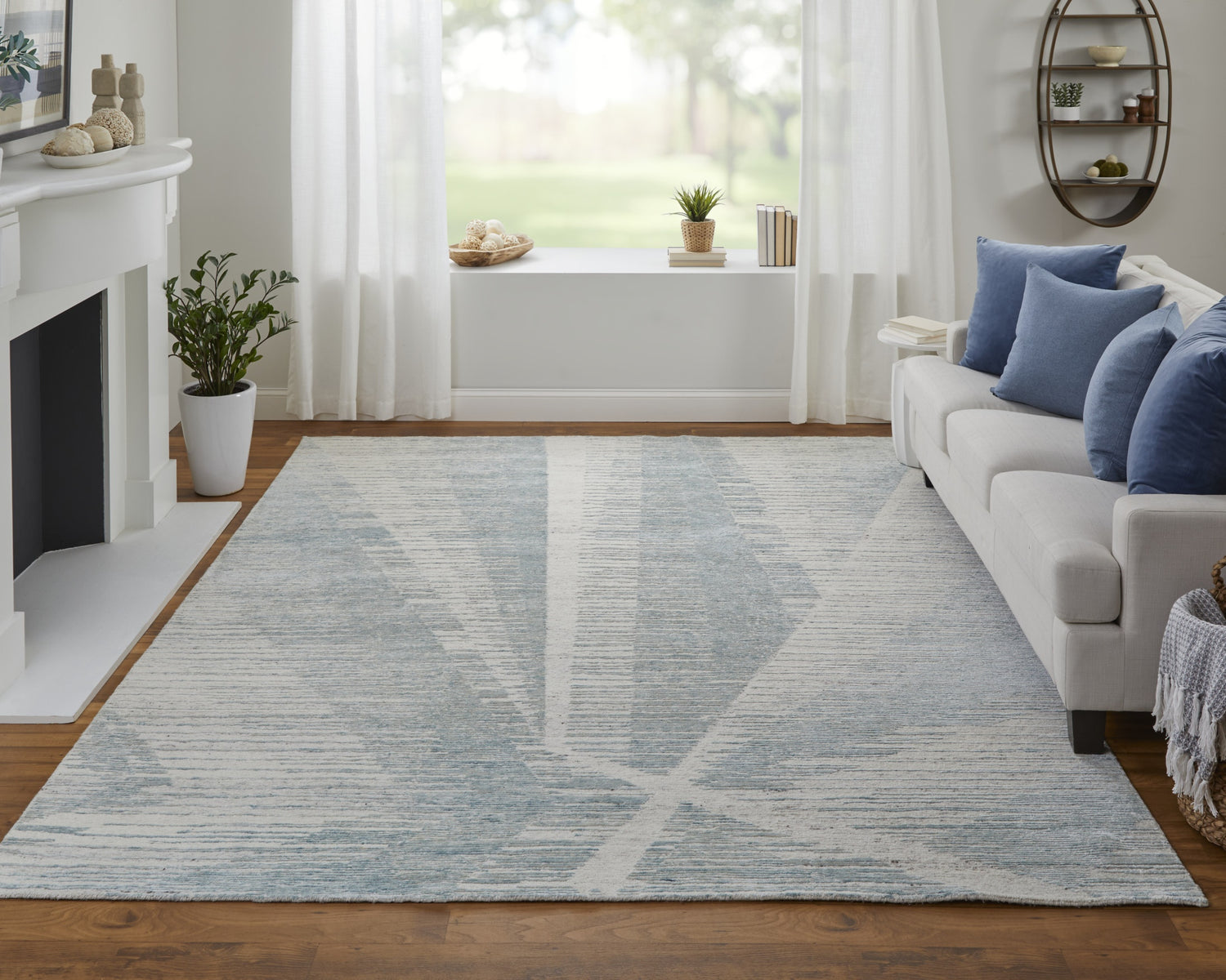 When selecting a living room rug, choose one that anchors your furniture by either placing all the legs on the rug or just the front legs, which helps define the seating area and enhances the room’s acoustics.