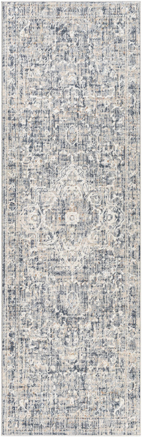 Step into the charm of yesteryear with our Buguey Blue & Gray Area Rug collection. This updated traditional area rug, woven with precision in Turkey, combines the timeless appeal of classic design with a modern twist. Adorned with a beautiful fringe, this rug is more than just a floor covering?it's a statement piece that demands attention without overpowering your decor. Made from polyester, it boasts a medium pile that feels plush underfoot and stands up well to high traffic areas making it perfect for those bustling family rooms or entryways. We recommend use with a rug pad to prevent slipping and sliding. Maintaining its allure is as easy as spot cleaning with mild detergent, ensuring it remains an eye-catching centerpiece in your home for years to come.