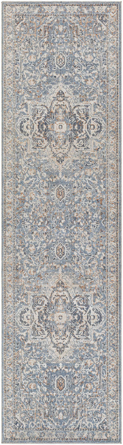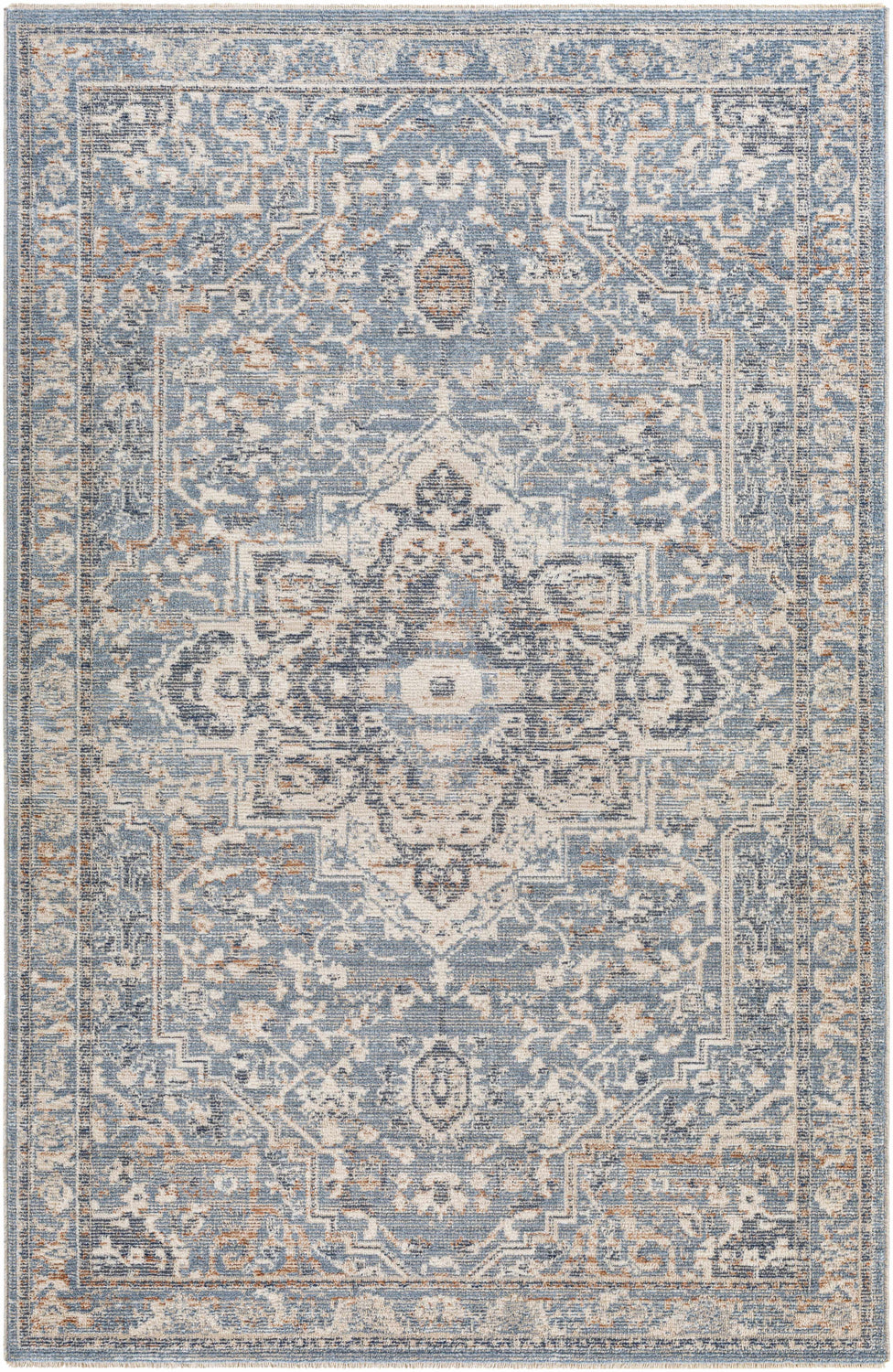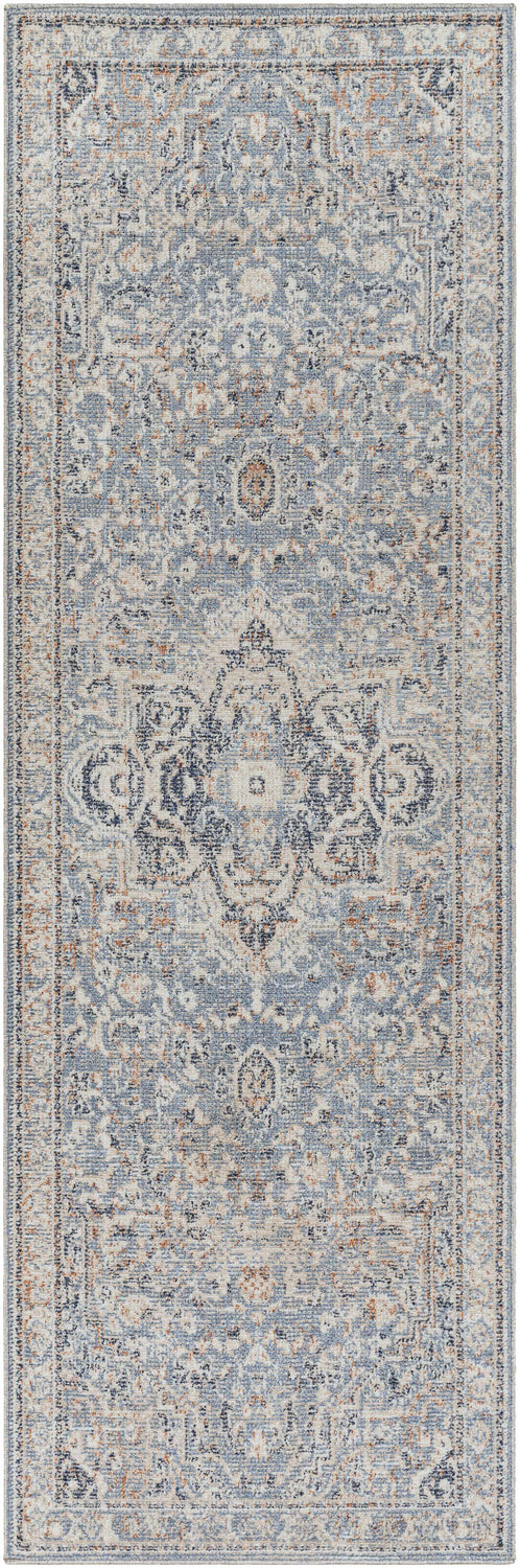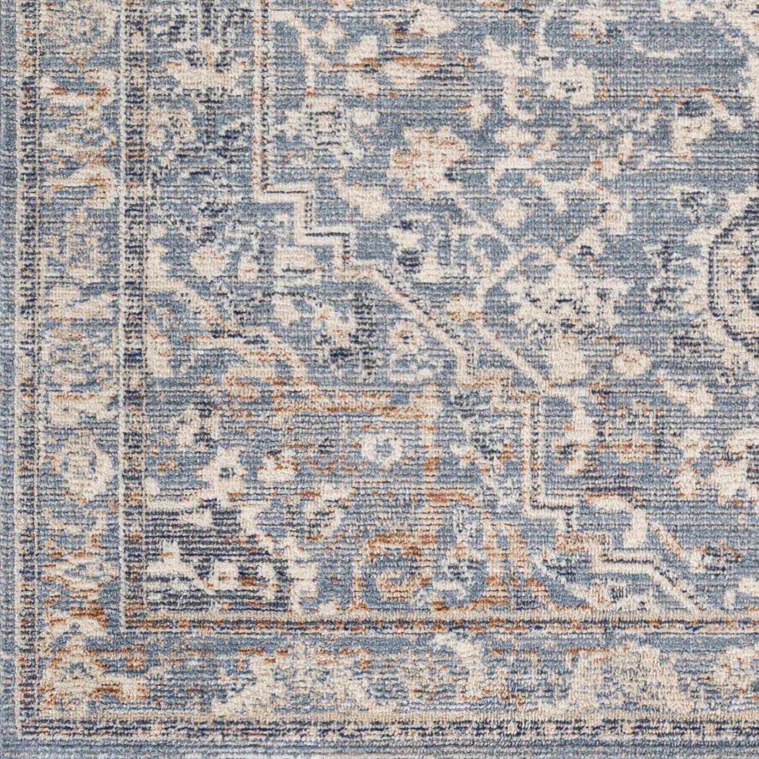 Step into the charm of yesteryear with our Buguey Cream&Blue Area Rug collection. This updated traditional area rug, woven with precision in Turkey, combines the timeless appeal of classic design with a modern twist. Adorned with a beautiful fringe, this rug is more than just a floor covering?it's a statement piece that demands attention without overpowering your decor. Made from polyester, it boasts a medium pile that feels plush underfoot and stands up well to high traffic areas making it perfect for those bustling family rooms or entryways. We recommend use with a rug pad to prevent slipping and sliding. Maintaining its allure is as easy as spot cleaning with mild detergent, ensuring it remains an eye-catching centerpiece in your home for years to come.