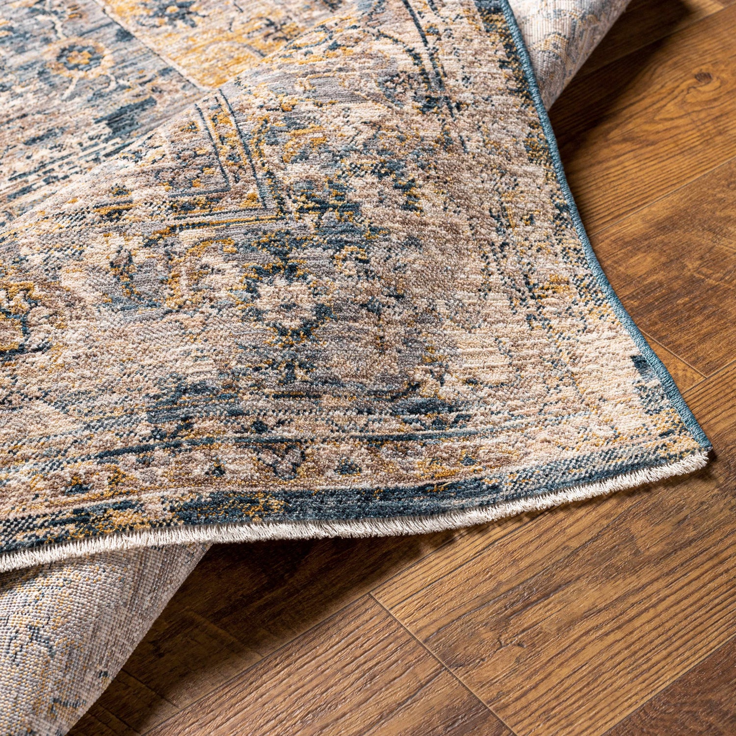 The Bulualto Area Rug will add timeless elegance to any room. Featuring an updated traditional style, this classic design is woven from 100% polyester and features a low pile that makes it perfect for high traffic areas. The fringe adds a subtle touch of sophistication and grace. This machine-woven masterpiece is made in Turkey with expert craftsmanship, ensuring it can withstand the test of time. For easy care, spot clean with mild detergent when needed. For added cushioning and stability, we recommend using a rug pad (not included). Bring classic beauty to your home today with the Bulualto Area Rug!