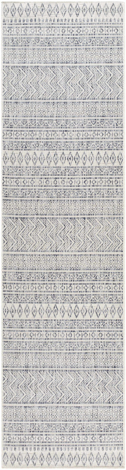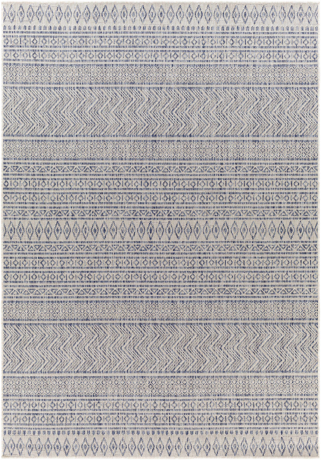 Introducing the Madras Navy All Over Performance Rug Bohemian Global area rug, a vibrant addition to any space that perfectly combines functionality and style. Made in Turkey from durable polypropylene, this machine-woven rug is designed to withstand high traffic areas, ensuring it will be a lasting feature in your home or outdoor space. What sets it apart is its no pile construction that makes cleaning a breeze - simply hose it off with water and hang to dry! For best results and an added layer of comfort, we recommend pairing this rug with a rug pad. With the Madras Navy All Over Performance Area Rug, you're not just purchasing an accessory for your home, but investing in an enduring piece of decor that brings global charm into your everyday life.