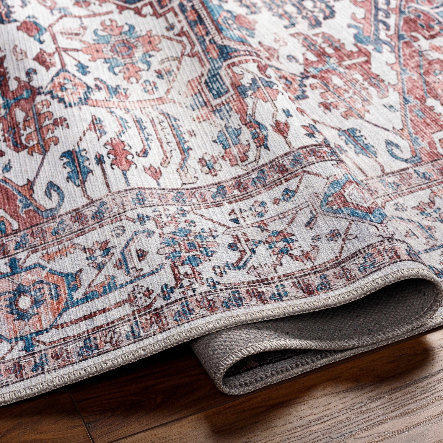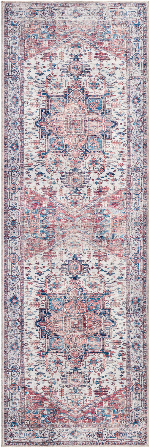 This Calla Washable Area Rug is the perfect addition to any living space. Its traditional style and machine-woven construction makes it a timeless piece that will last for years to come. Crafted from Chenille-Polyester and Cotton, this no-pile rug is durable enough to withstand high traffic areas while remaining soft underfoot. With its origin in Turkey, this versatile area rug is sure to add texture and interest to any room. For best results, we recommend using with a rug pad (sold separately). Easy care instructions: do not bleach.