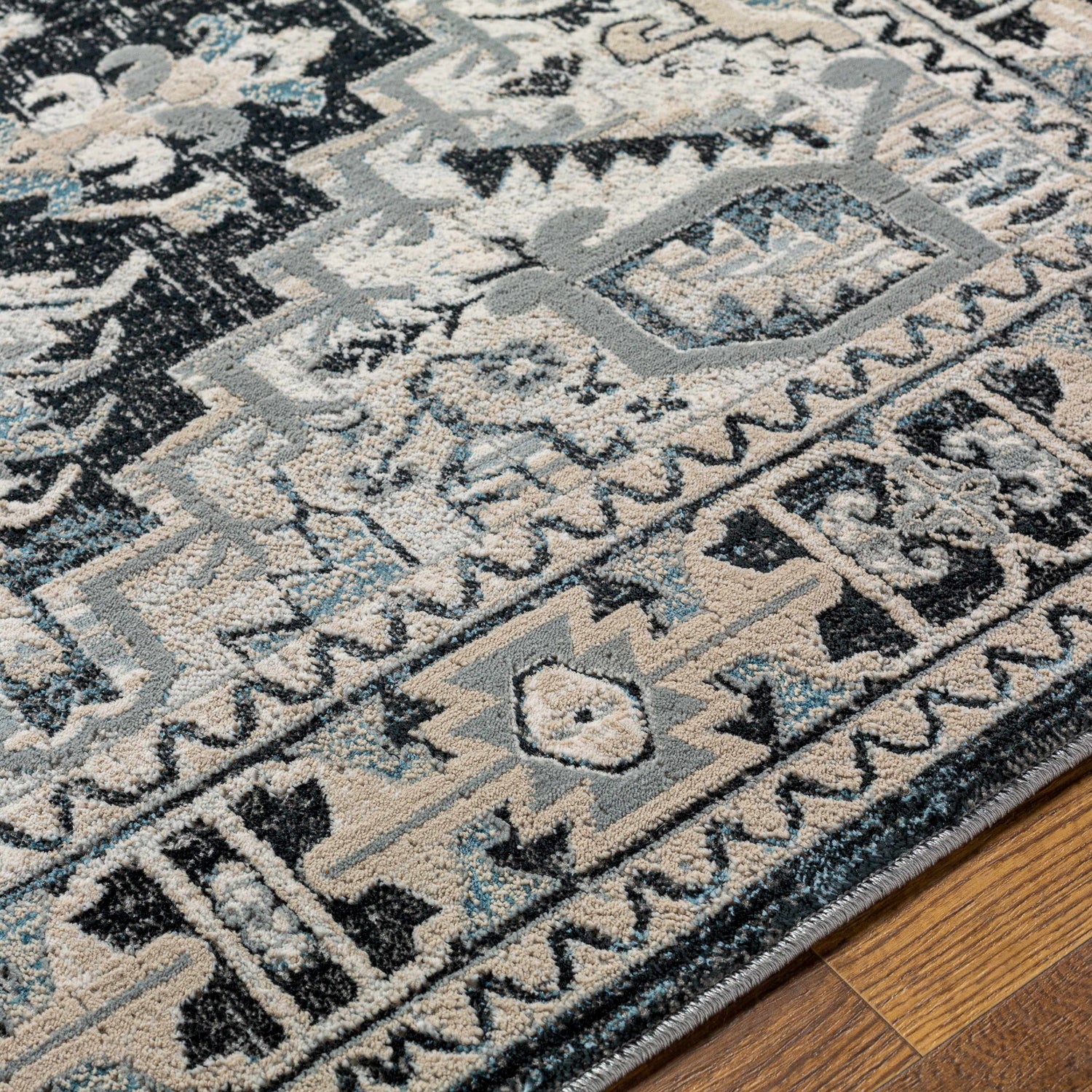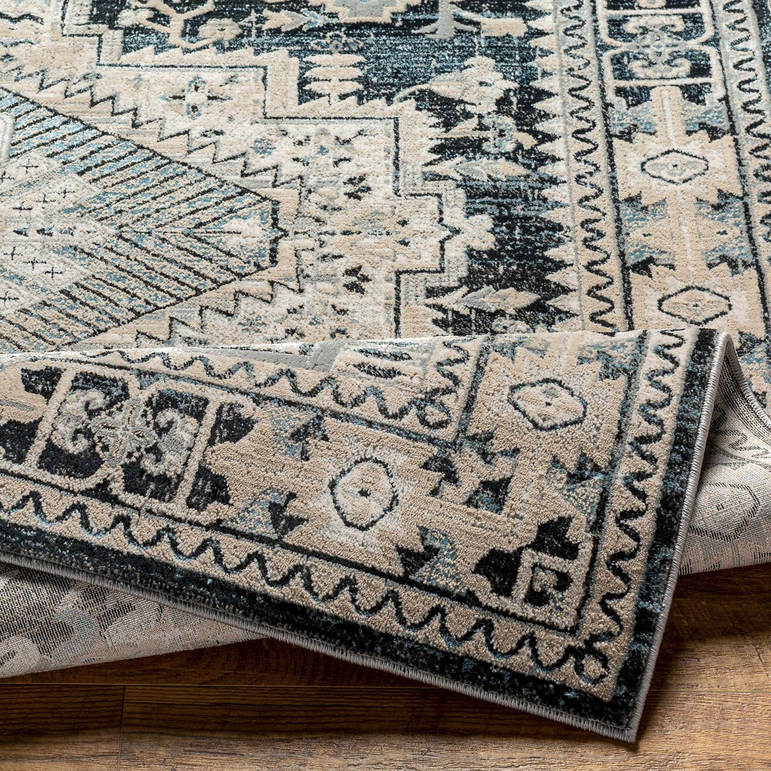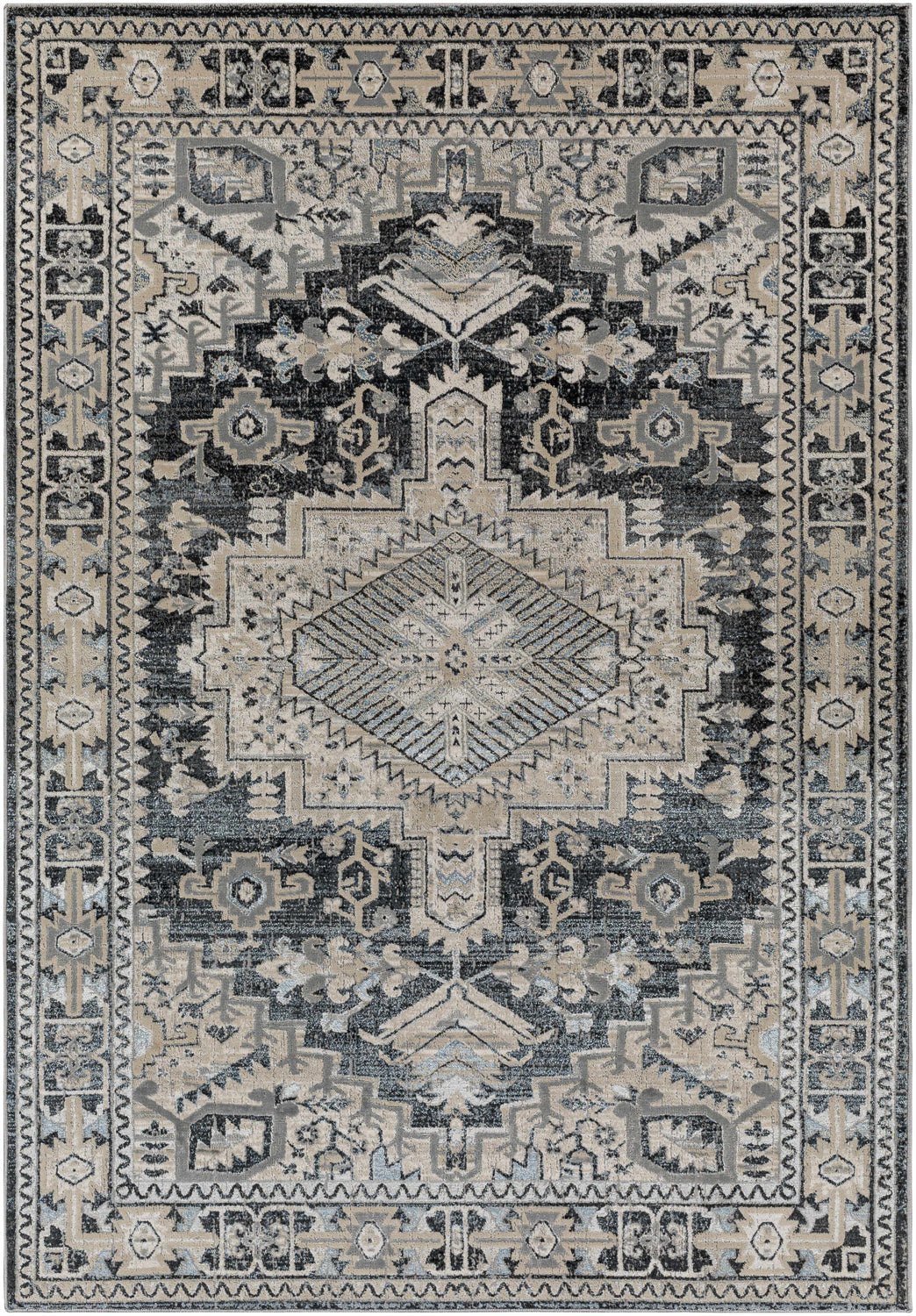 Make a statement in your home with this Calolbon Area Rug. This traditional-style rug is made of a combination of Polypropylene and Polyester, creating a medium pile that will last through high traffic areas. The machine woven construction and high/low pattern gives this luxurious rug its lustrous sheen, while the Turkish craftsmanship makes it an elegant addition to any room. For best results, use with a rug pad (not included) and professionally clean as needed.