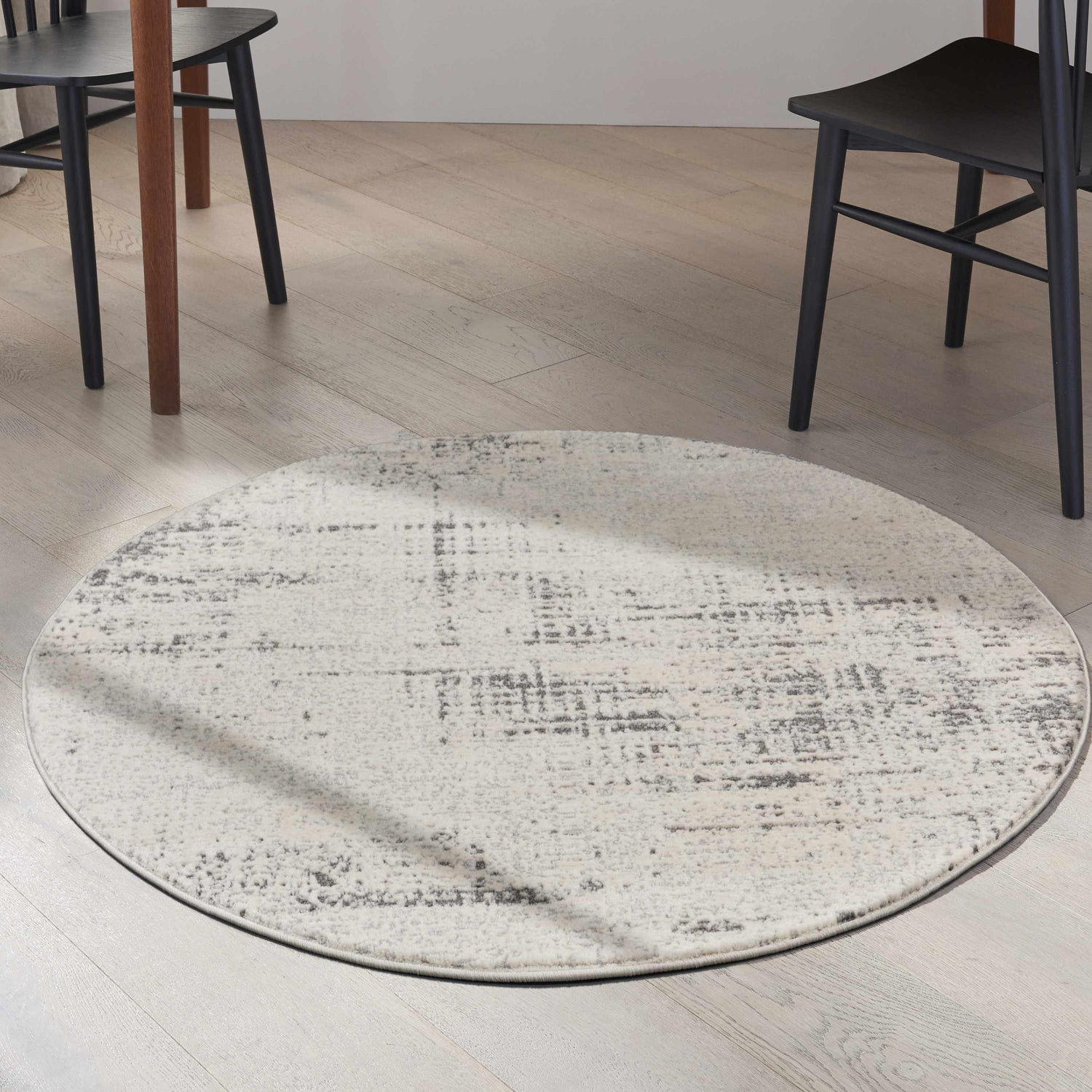 Soft ivory and gray tones melt into a subtle abstract pattern on the Calvin Klein Rush — a modern, versatile rug that adds quiet depth to any space.