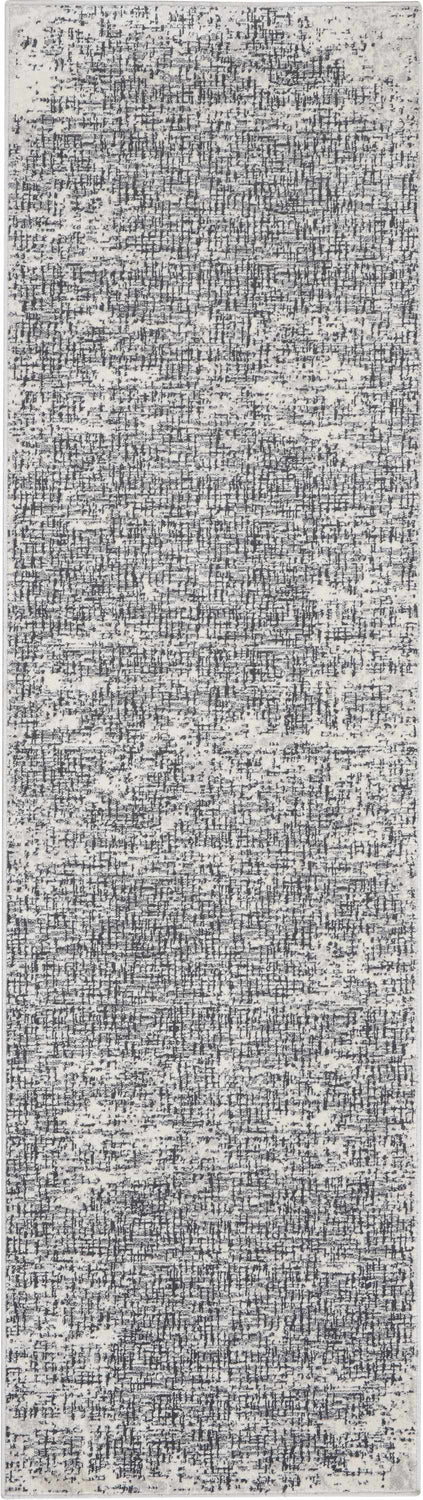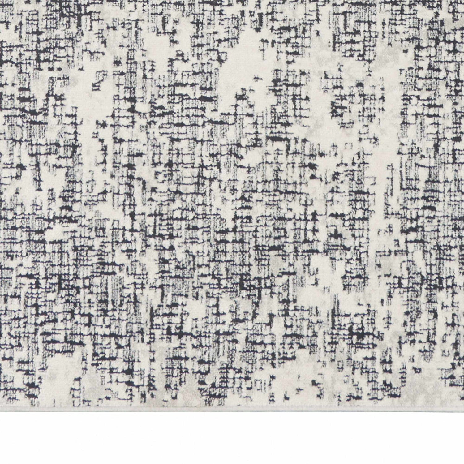 - Allover abstract crosshatch pattern in black, ivory, and gray