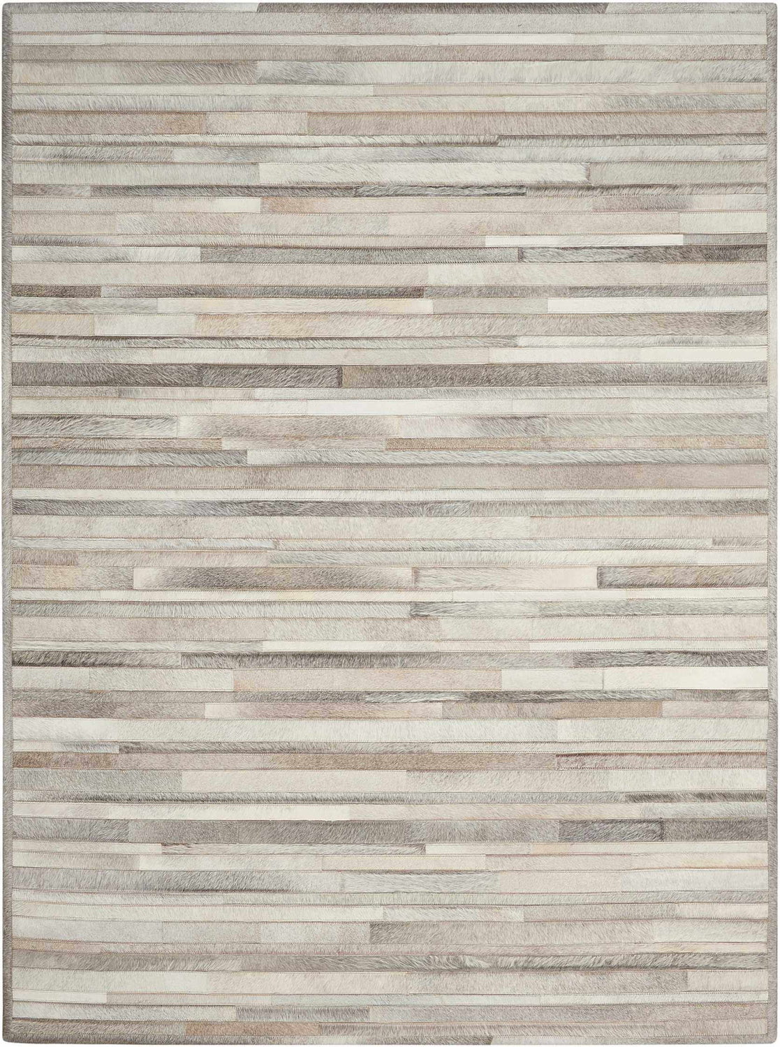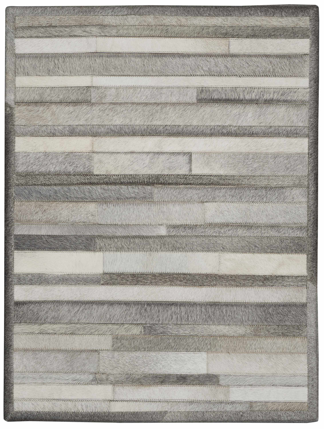 Genuine cowhide patchwork in soft silver and gray tones — the Calvin Klein Prairie rug brings quiet luxury and natural texture to modern interiors.