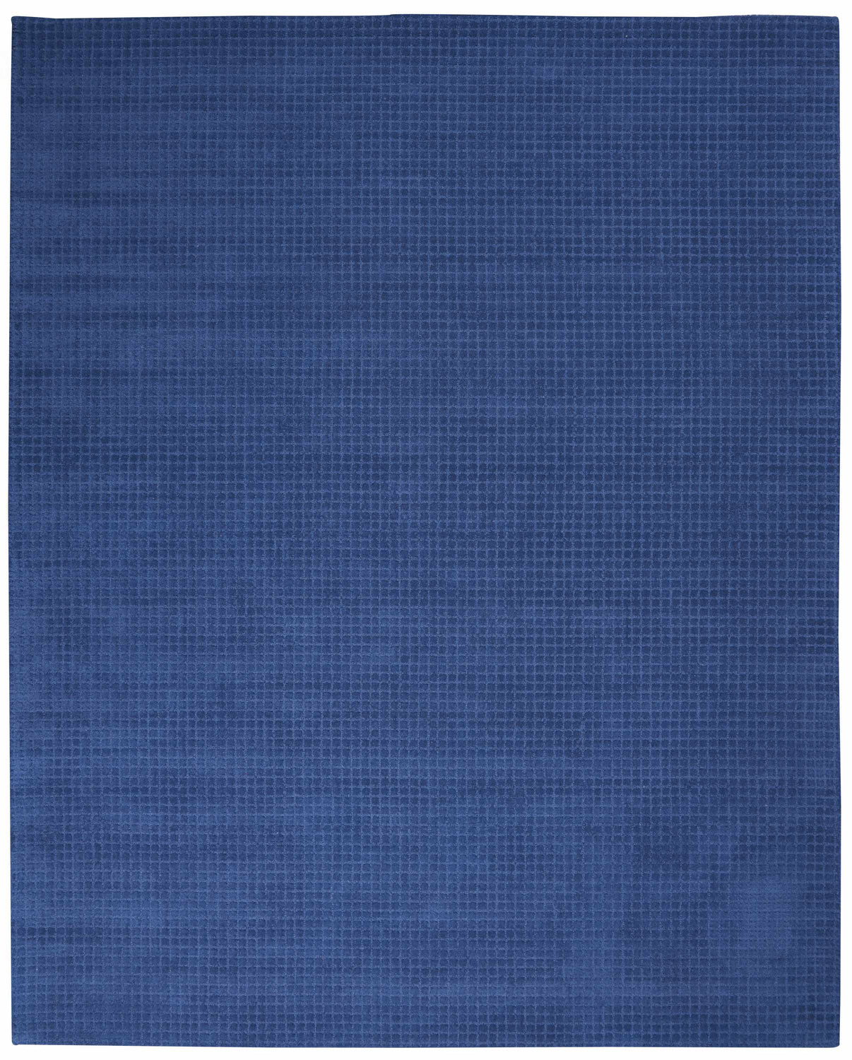cool paletteAn enveloping, rich navy blue covers the entire surface, with a slightly deeper blue-on-blue grid pattern woven into the pile — the result is a tone-on-tone effect that feels refined and dimensional rather than flat or plain.