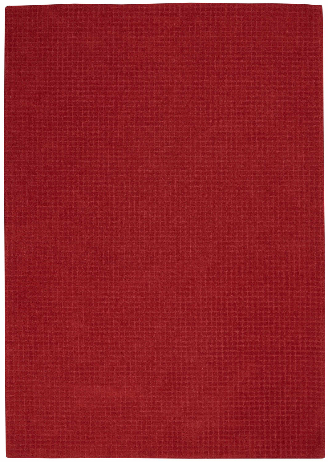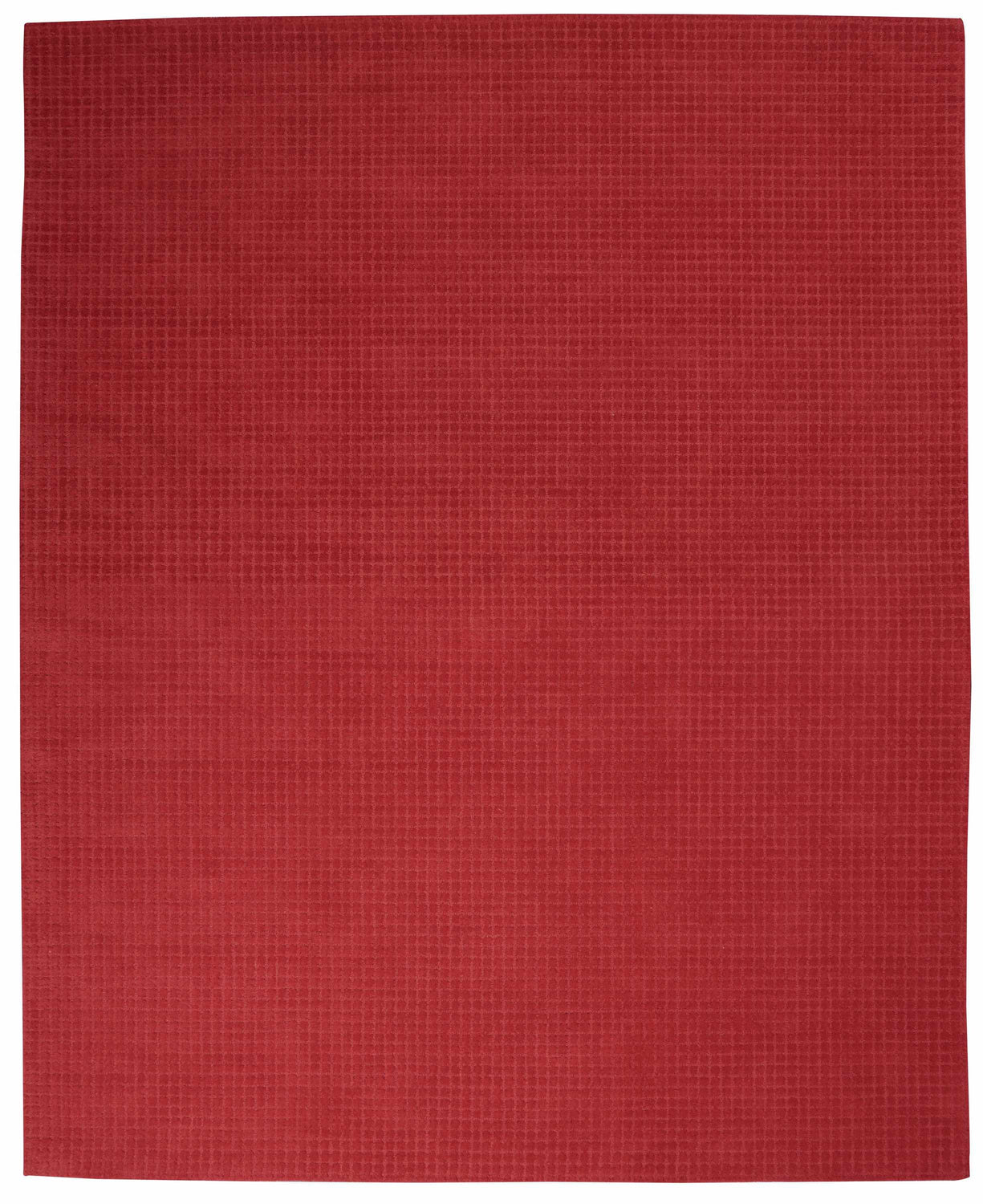 warm paletteAn all-over deep crimson red dominates every inch of this rug, with the subtle grid pattern creating slight tonal variation between burgundy shadows and brighter red highlights — rich, warm, and unapologetically bold.
