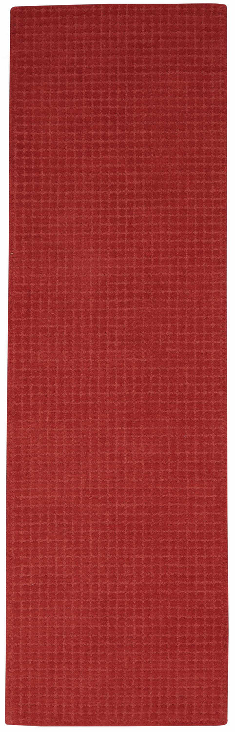 A rich, all-red geometric runner with a retro-modern grid pattern and plush 0.75" pile — bold enough to transform a hallway, versatile enough for any room.
