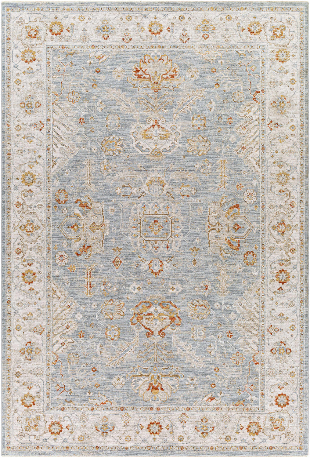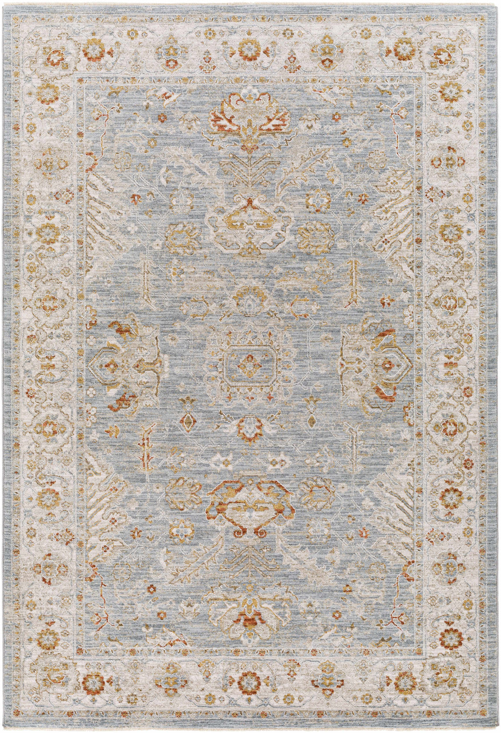 Make a statement in your living room or dining room with the Camrose Area Rug. This updated traditional style rug features intricate details that will draw the eye and provide a luxurious look to any space. It is crafted from polypropylene and polyester materials, making it soft to the touch and durable enough for high traffic areas. The medium pile offers comfortable cushioning while the fringe adds a unique touch of elegance. The machine woven construction ensures longevity, so you can enjoy this piece for years to come. Simply spot clean with mild detergent when needed to keep it looking its best. Add this beautiful area rug to your home today!