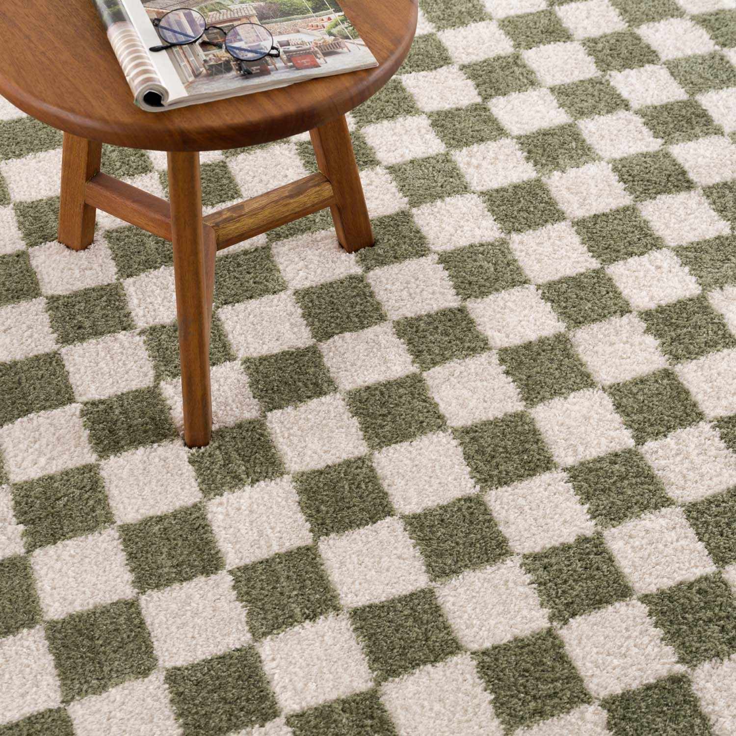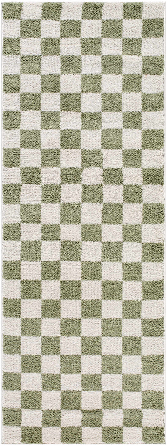 Introducing the Canika Green Checkered Washable Area Rug, an Art Deco Modern masterpiece that will bring a touch of sophistication to any living space. This machine woven rug boasts a high pile, creating an ultra-luxurious underfoot experience that your toes will thank you for. Crafted in Turkey from durable polyester, it's designed to withstand everyday wear while maintaining its plush texture and rich look. For optimal use and to extend its life, we recommend using this rug with a pad. Don't fret about cleaning; simply pop it in the washing machine on a delicate cycle, lay flat to dry and it'll be as good as new!