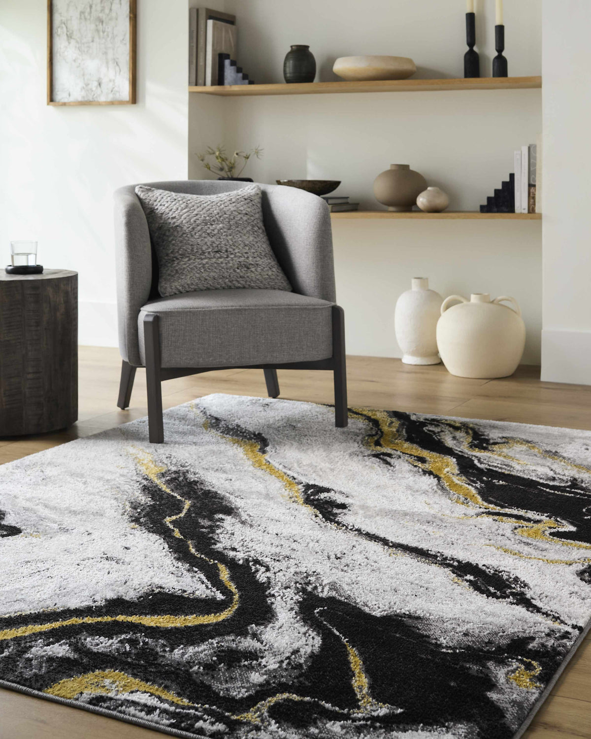 Step into comfort and style with the Casmir Area Rug, a stunning piece that effortlessly embodies the sought-after Mid-Century Modern aesthetic. Manufactured in Turkey and machine woven to perfection, this rug features a medium pile that is perfectly suited for high traffic areas, ensuring longevity and durability in your home. Its material composition of polypropylene and polyester adds a luxurious touch to its texture. We highly recommend pairing this rug with a pad for optimal use and longevity. Plus, it's easy to maintain ? simply spot clean with mild detergent when necessary. This gorgeous Casmir Area Rug truly marries functionality with fashion, creating an inviting atmosphere in any room.