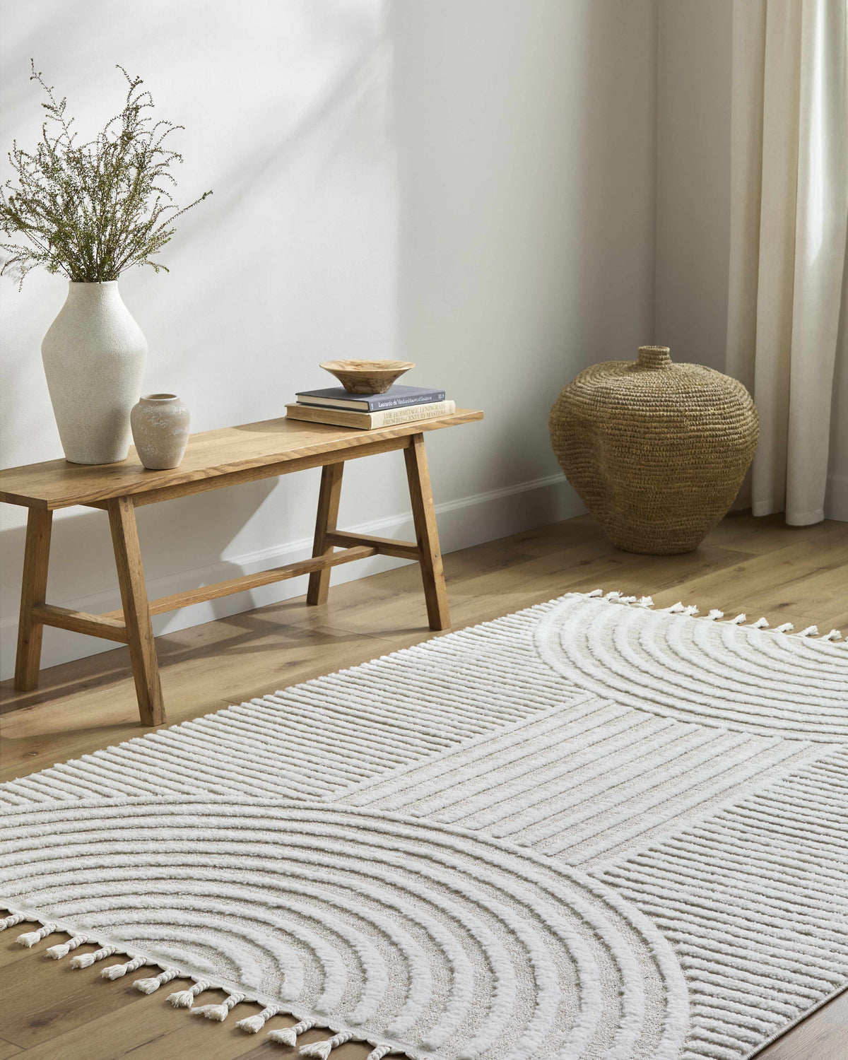 Step into the world of minimalist modern style with the Cassie Area Rug Collection Area Rug. This Turkish manufactured, machine woven rug is made from high pile polypropylene that provides a lush, comfortable feel underfoot. The addition of a distinctive fringe adds an extra touch of character to this sleek and chic piece. Not only is it visually appealing, but it's also incredibly easy to maintain - simply spot clean with mild detergent to keep it looking as good as new. For optimal use and longevity, we recommend pairing this rug with a rug pad. Transform your space with the Cassie Area Rug - where comfort meets contemporary design.