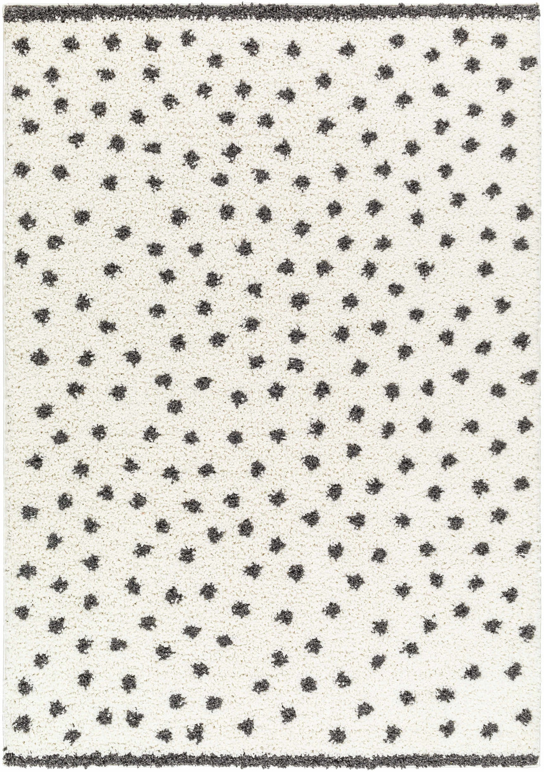 This modern area rug from the Chaia Dotted Black & White Plush Rug collection is sure to add a touch of class and sophistication to your home. Crafted from polyester, this rug features a plush pile that's both soft and comfortable underfoot. The machine woven construction provides durability, making it perfect for high traffic areas. Plus, its resistance to stains makes it easy to maintain with spot cleaning and mild detergent. For best results, pair with a rug pad (not included) for extra cushioning and stability. Show off your sense of style with this beautiful area rug from the Chaia Dotted Black & White Plush Rug Collection!