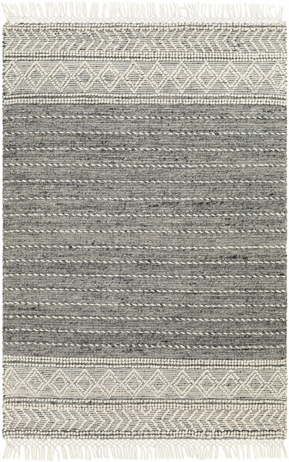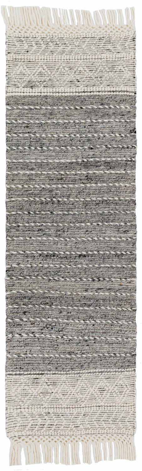 Charcoal Cream Arguvan Wool Blend Braided Tassel Area Rug - Clearance