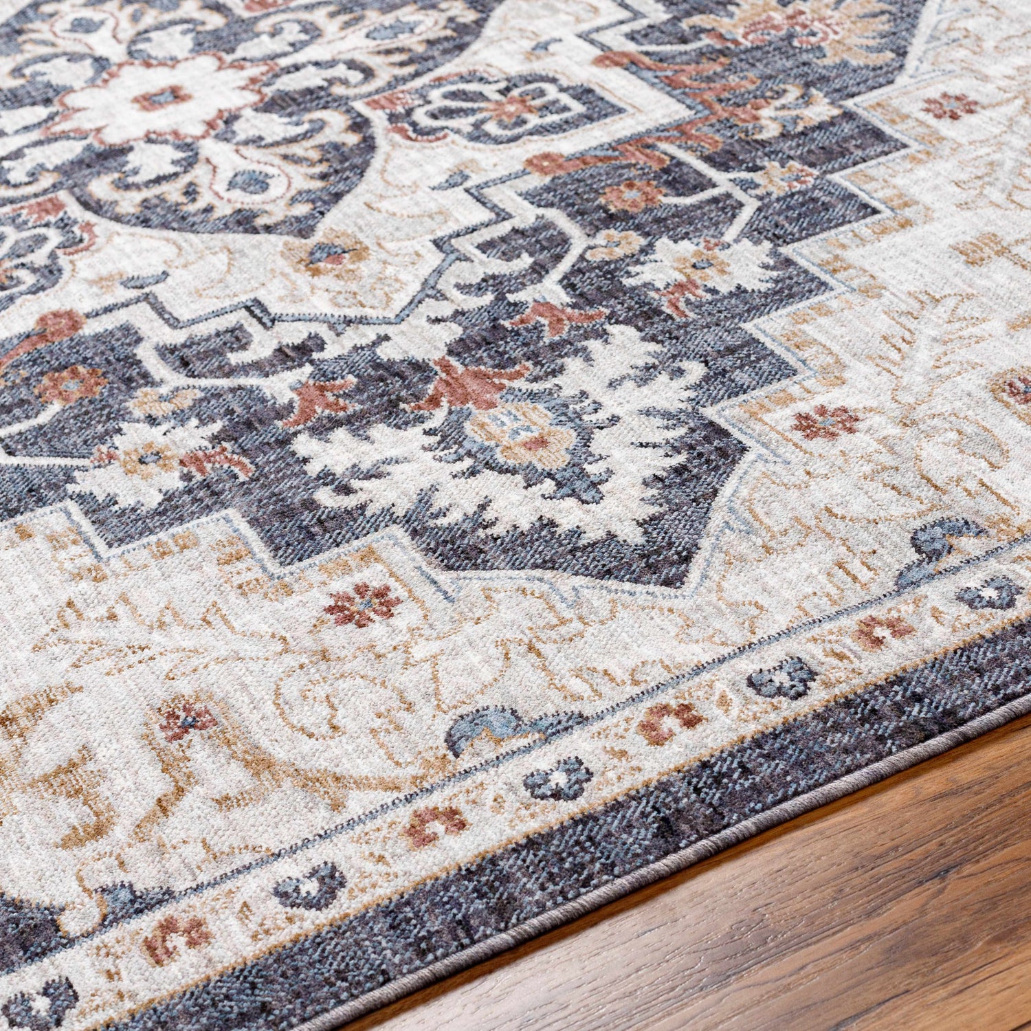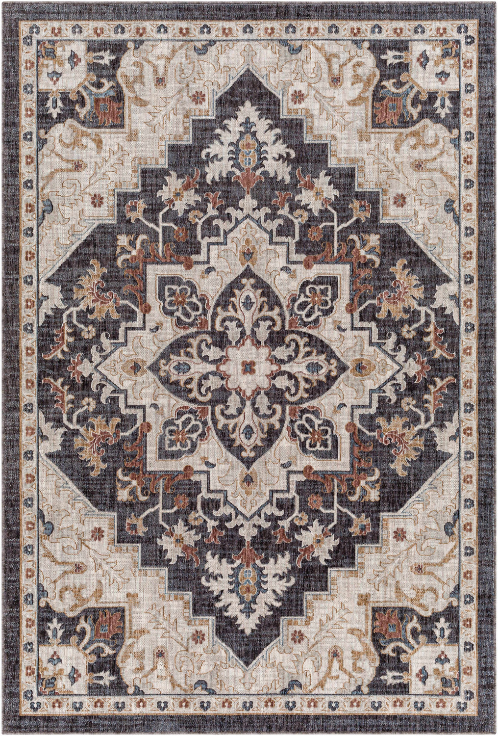 This Lewa Charcoal Area Rug combines traditional style and modern sustainability. Featuring a low pile and machine-woven construction, it's perfect for high traffic areas like entryways and hallways. Made of recycled fabric, this rug is not only eco-friendly, but also outdoor safe. It's made in Turkey with a durable craftsmanship that will last for years to come. For extra cushioning, we recommend using a rug pad (not included). Buy the Lewa Charcoal Area Rug today and enjoy an elegant addition to your home that is also environmentally friendly!