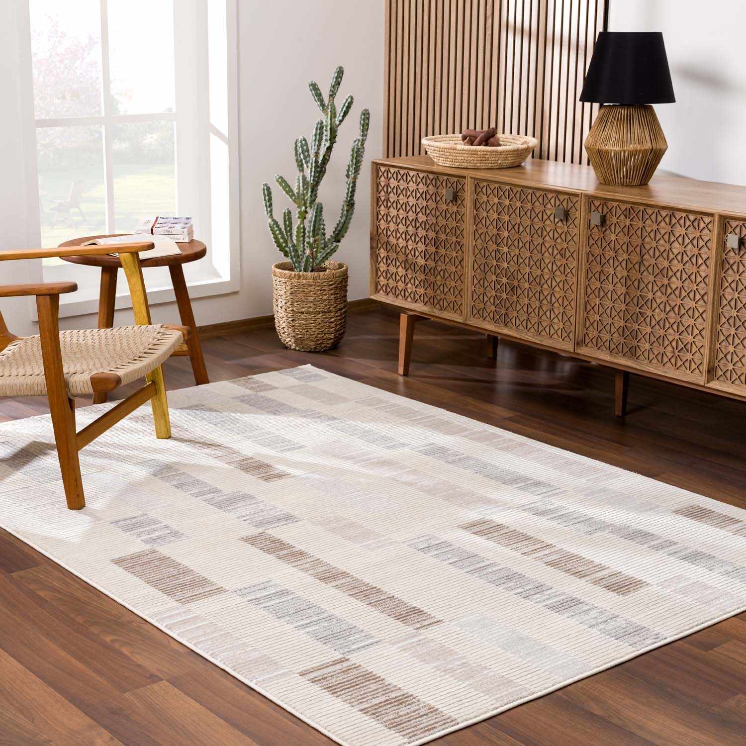 Step into the mid-century modern era with our Chouko Broken-Striped Area Rug Collection area rug, machine woven in Turkey with a blend of polypropylene and polyester for long-lasting durability. This rug features a medium pile height that's perfect for high-traffic areas, offering both style and function to any space. Plus, it's easy to maintain - simply spot clean with mild detergent to keep it looking fresh and new. We recommend using this rug with a pad for added comfort and stability. Add a touch of timeless elegance to your home with the Chouko Broken-Striped Area Rug!