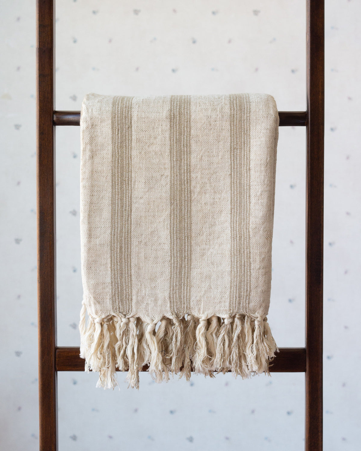 Introducing the Ciragan towel, a beautifully crafted piece of art that combines luxury and functionality. Made from the finest cotton and linen blend, this towel is not only soft to the touch but also highly absorbent, making it perfect for use after a refreshing shower or dip in the pool. The unique stripes in beige and light brown make it a stylish addition to any bathroom. The oversized design of this towel makes it versatile and can be used as a beach wrap, picnic blanket or even a shawl. Indulge in luxury and comfort with the best-selling Ciragan towel.