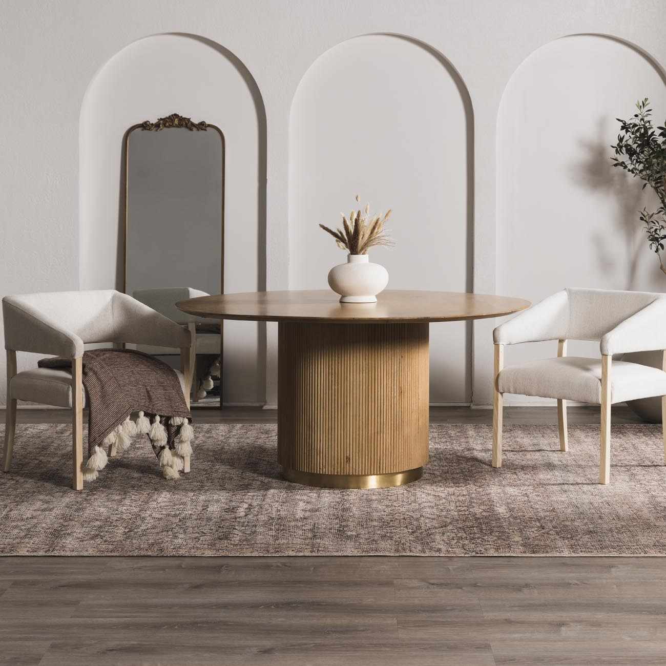 When selecting a dining room rug, choose one large enough to fit under the table and chairs, ensuring that when the chairs are pulled out, they remain on the rug for a balanced look.