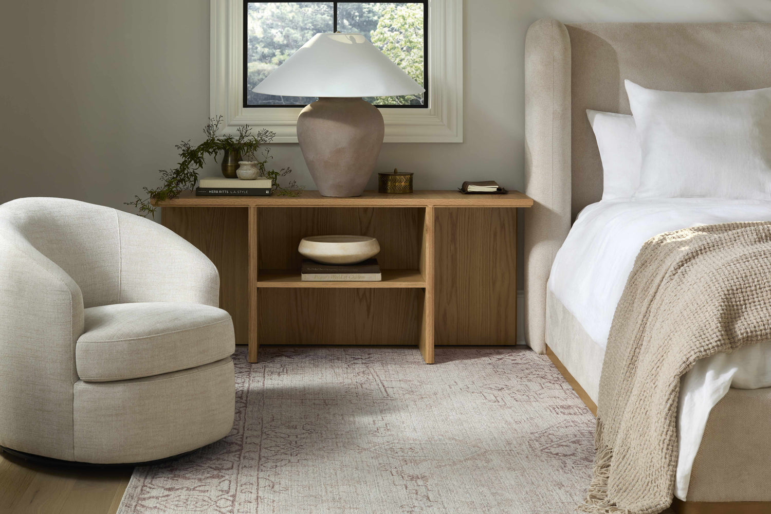 In the bedroom, opt for a rug that extends under the bed, providing a soft surface to step onto when getting out of bed and creating a cozy atmosphere.