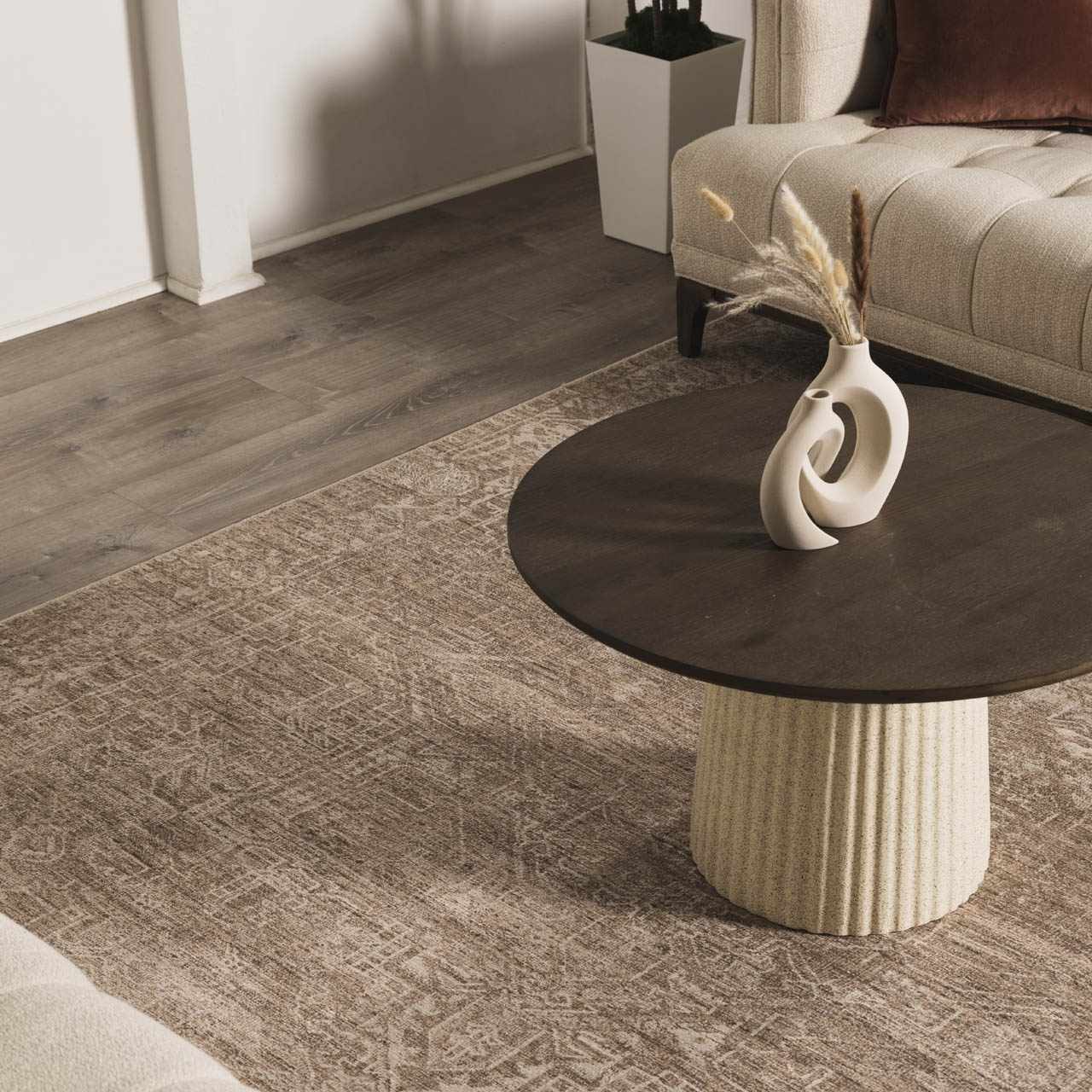 When selecting a living room rug, choose one that anchors your furniture by either placing all the legs on the rug or just the front legs, which helps define the seating area and enhances the room’s acoustics.
