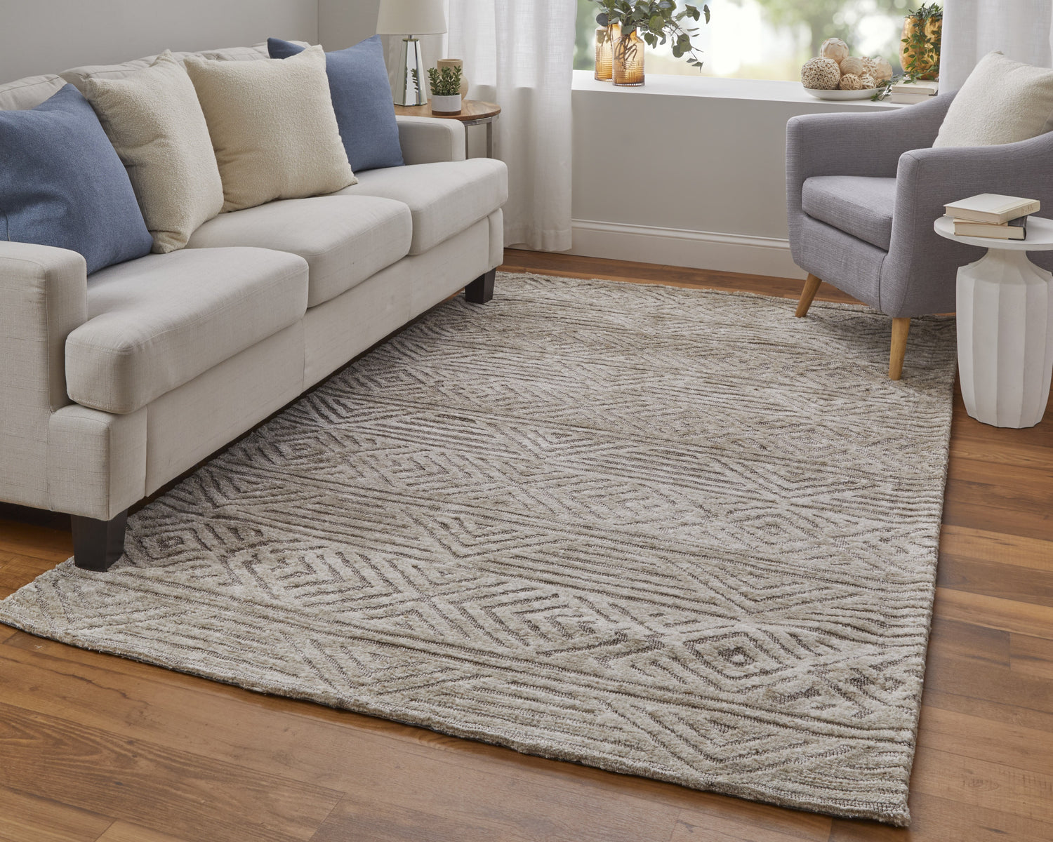 Feizy Colton Modern Geometric - Tan/Ivory/Brown Area Rug