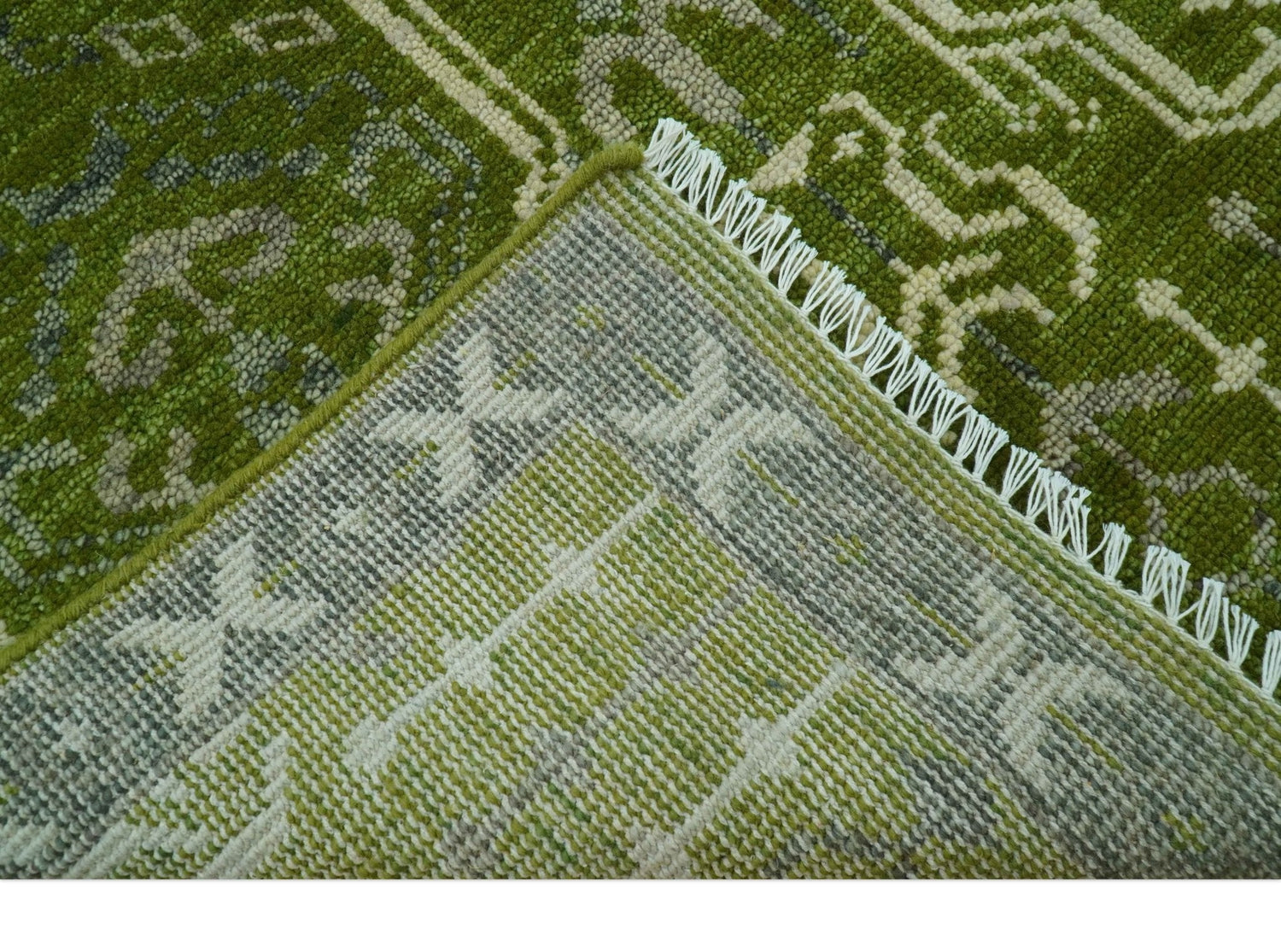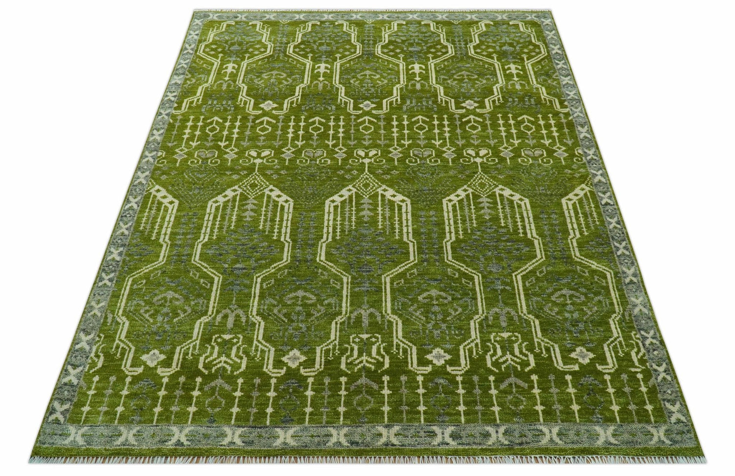 Contemporary Traditional Design Green And Beige Hand Knotted Custom Made Wool Rug
