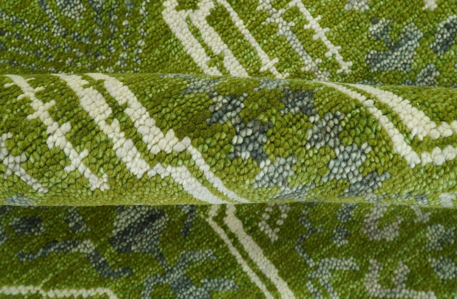 Expertly hand-knotted using premium-quality wool, this custom-made area rug boasts a contemporary design in green and beige. With its luxurious feel and durable construction, it is a stylish and practical addition to any space. Elevate your home decor with this exquisite piece.
