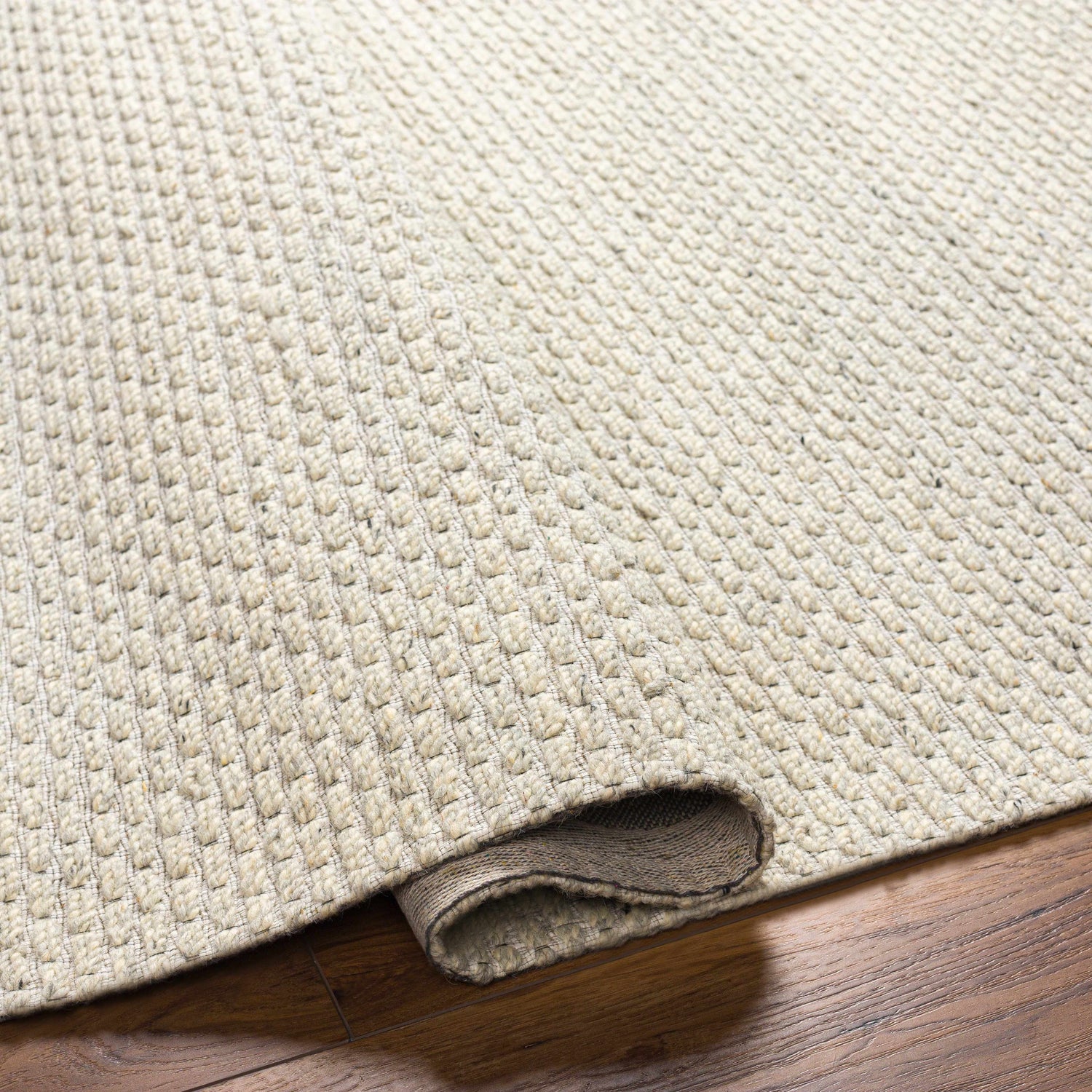 This Cream Emlen Area Rug area rug is a must-have addition to your home. Its cottage style lends an inviting, cozy atmosphere to any room. Hand-woven with wool in India and featuring no pile construction, this rug offers superior durability that will last for years to come. We recommend using a rug pad (not included) for added cushioning and stability. With its timeless design and classic color palette, the Cream Emlen Area Rug area rug will add a touch of warmth and style to any space.