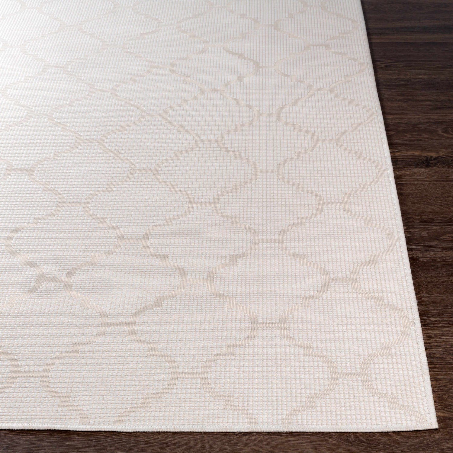 This beautiful Cream Moolap Outdoor Area Rug will bring a timeless, traditional style to your home. The machine woven construction and polypropylene material make it an ideal choice for high traffic areas and outdoor use. This no pile rug is easy to care for and maintain, so you can enjoy its beauty for years to come. Made in Turkey with superior craftsmanship, this rug is sure to be an eye-catching addition to any room of your home. For added comfort and protection, we recommend pairing this rug with a non-skid rug pad (sold separately).