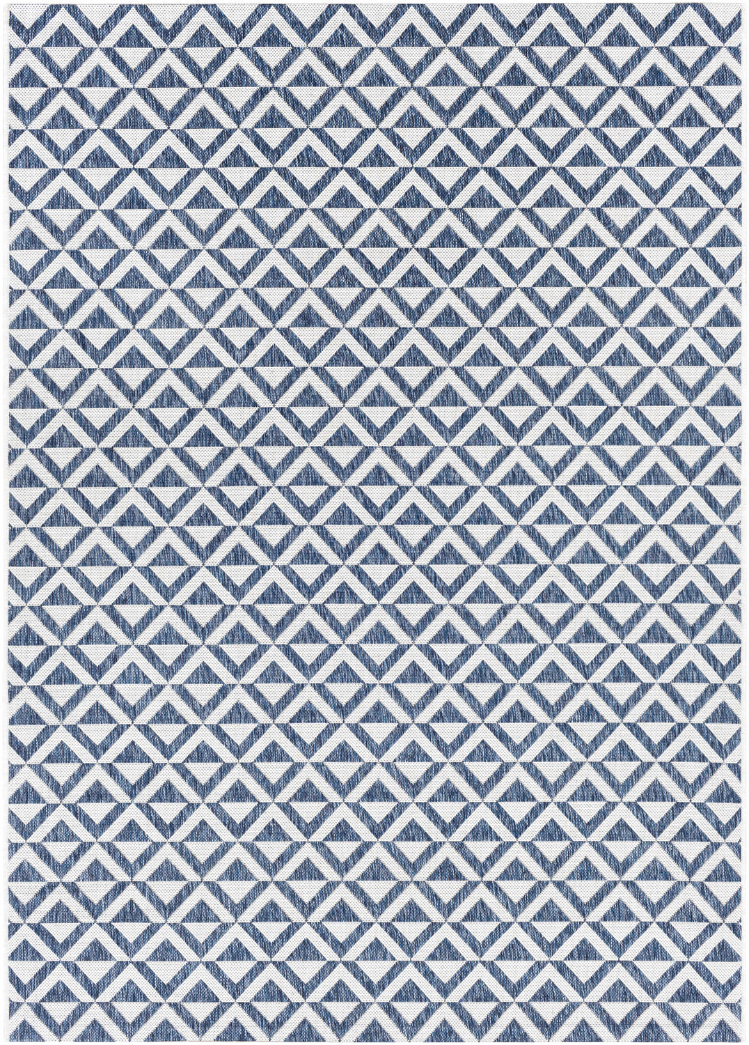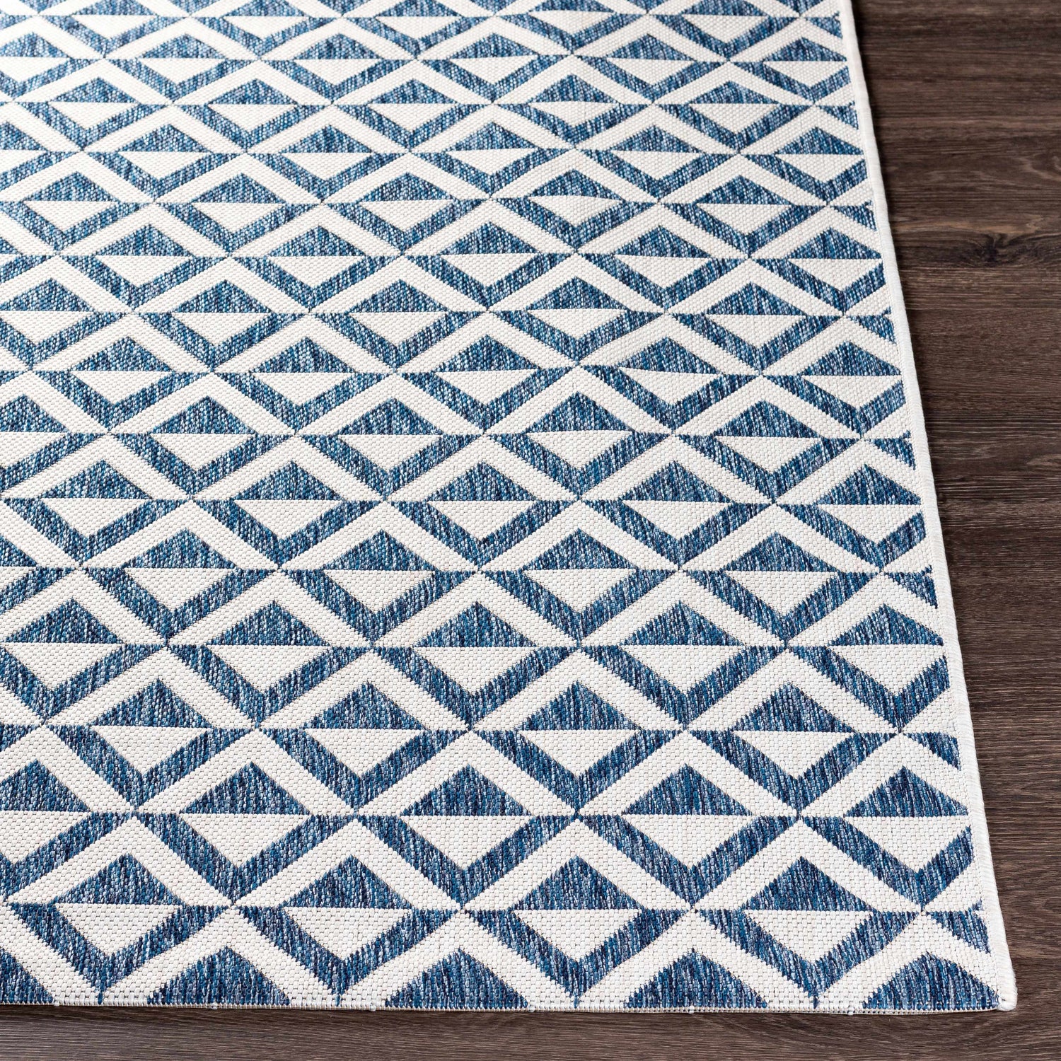 The Cumby Denim Outdoor Area Carpet Area Rug is a perfect addition to any minimalist modern home. Its unique construction is machine woven in Turkey, using durable polypropylene that can withstand high traffic areas and outdoor weather conditions. This no-pile rug features a textured surface for added character, making it an eye-catching piece for your living space. To ensure long-lasting use, be sure to add a rug pad and clean with hosing off with water and hang to dry when needed.