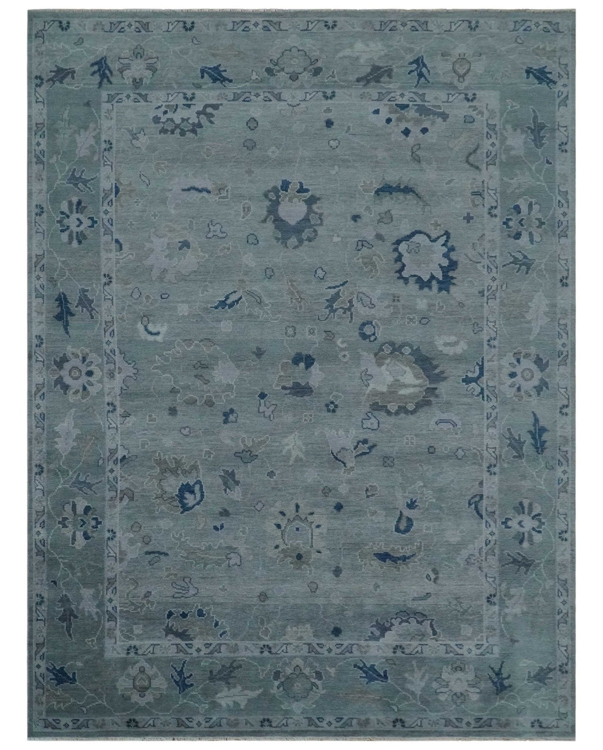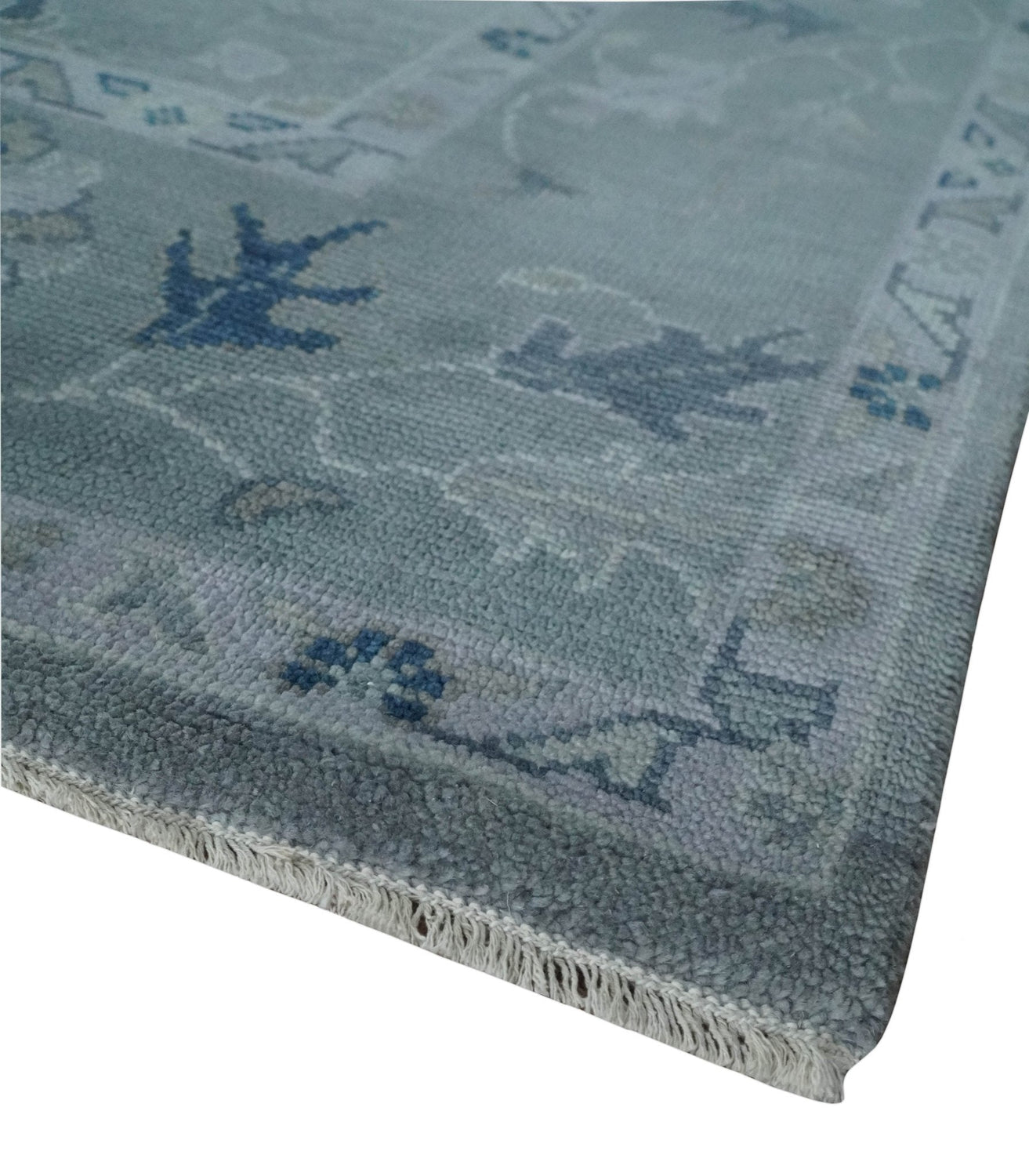Custom made Antique style Blue and Silver Hand Knotted Oushak Wool Area Rug