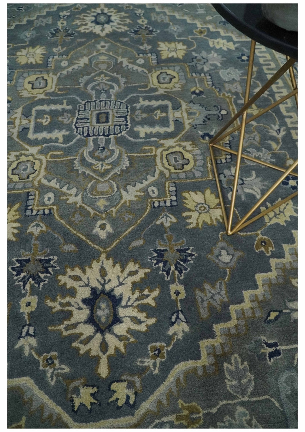 This Antique Floral Gray, Blue, and Beige Hand Tufted Traditional wool Area Rug features a unique design of antique motifs on a Gray wool background. This traditional Heriz rug is hand tufted for superior quality, and invites a sophisticated atmosphere to any living space.
