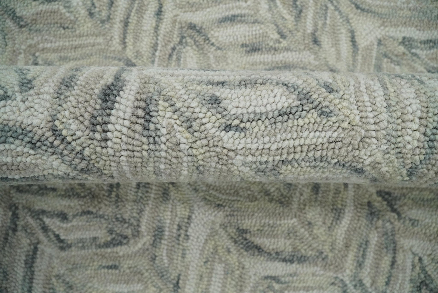 Custom Made Beige and Gray Leaf's Hand Tufted Modern Scandinavian Wool Loop Rug