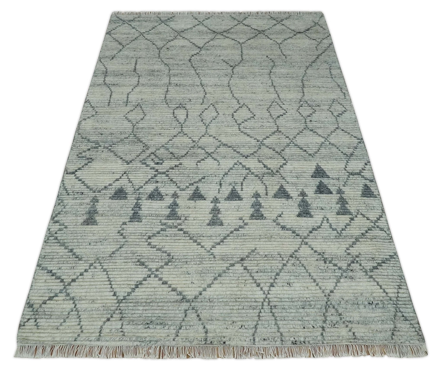 Custom Made Beni Ourain Hand Woven Ivory and Moroccan Trellis Rug Made with Blended Wool