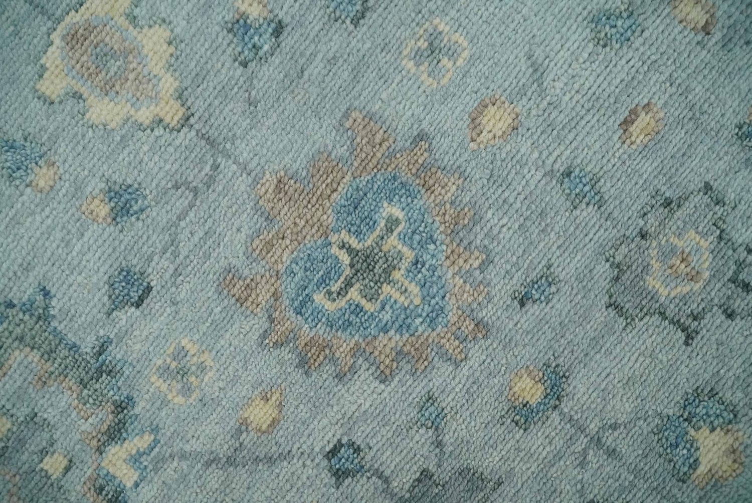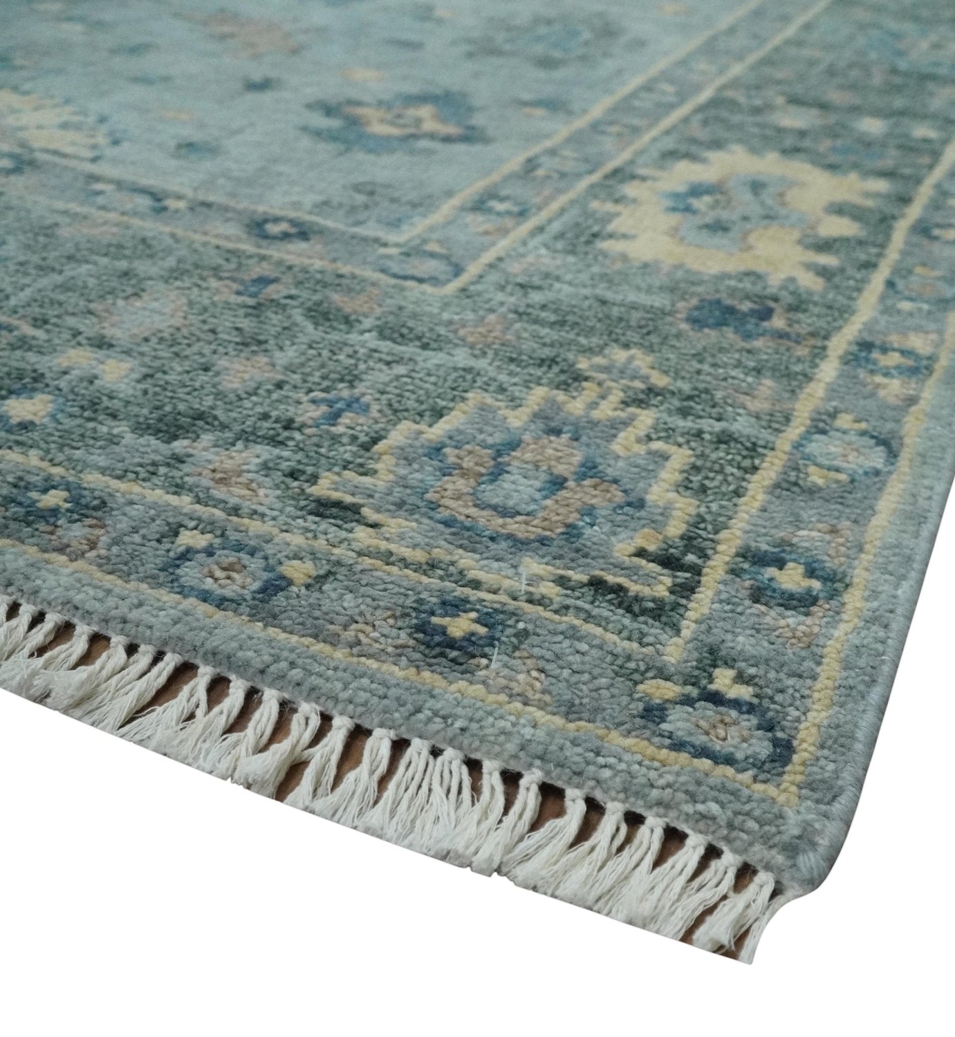 Custom Made Blue and Green Hand knotted traditional Oushak wool Area Rug