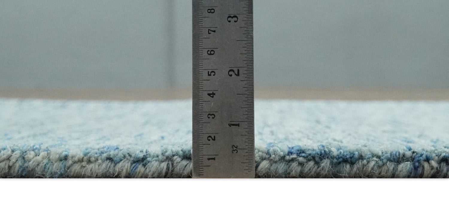 Custom Made Blue and Ivory Shaded Solid Wool Hand Woven Layering Area Rug
