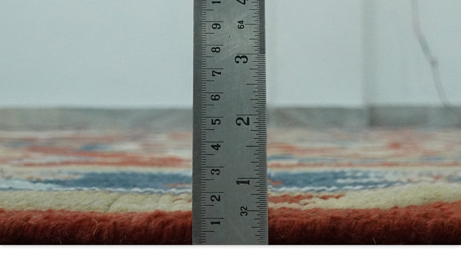 This specific rug is made in India, in the city of Bhadohi. Bhadohi is one of the biggest rug manufacturing cities. Carpet weaving in the region dates back to the 16th century during the reign of Akbar. The skilled artisans of Bhadohi have been carrying the tradition of rug-making for centuries.