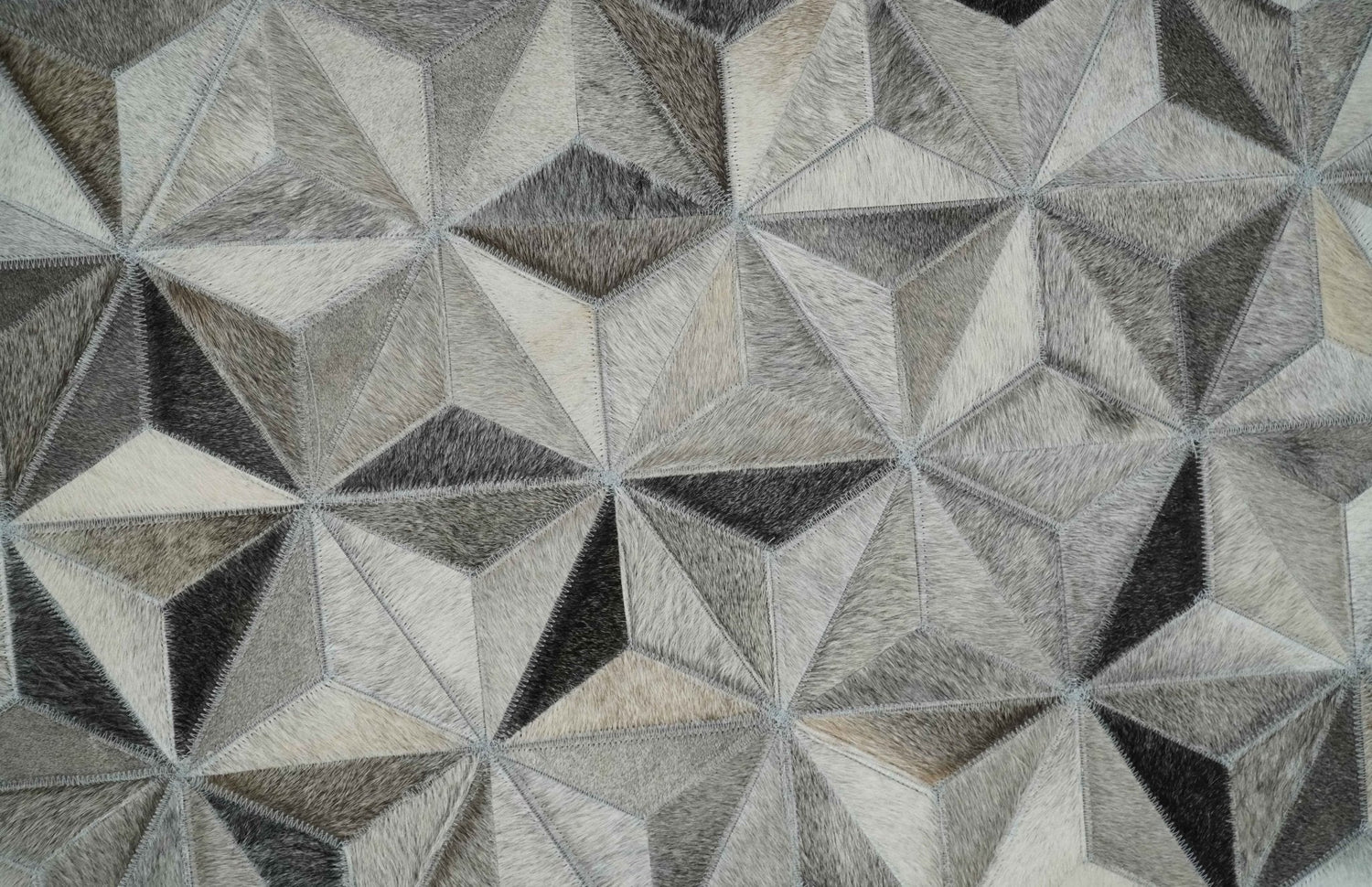 Custom Made Cowhide Leather Patchwork Silver and Gray Leather Modern Geometric Rug