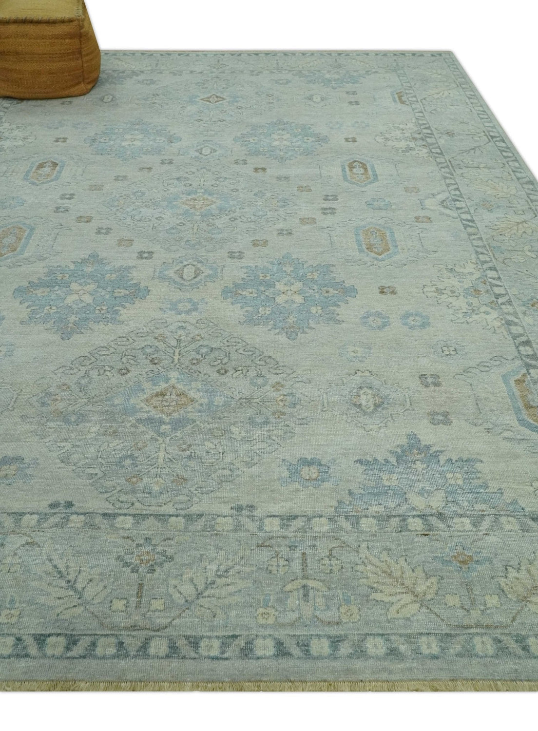 Custom Made Distressed Finished Beige and Gray Traditional mamluk design Low Pile wool Rug