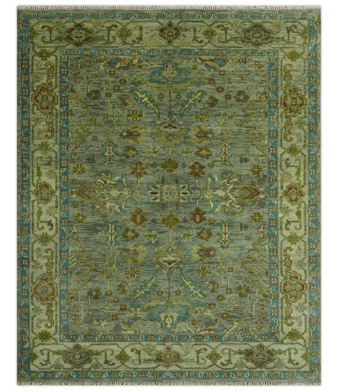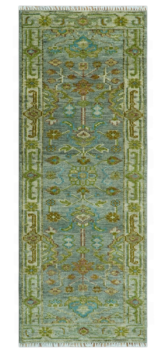 Custom Made Green Hand Knotted Antique Design Traditional Oushak wool area rug