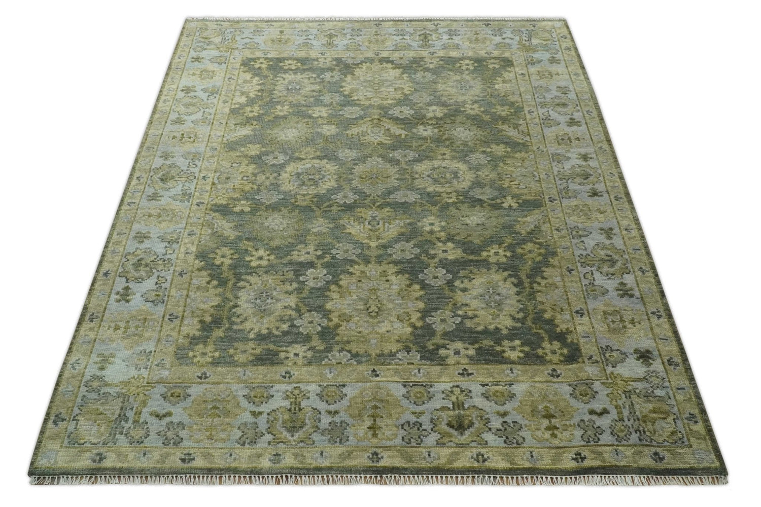 Custom Made Green, Silver and Olive Hand knotted Traditional Oushak Wool Area Rug