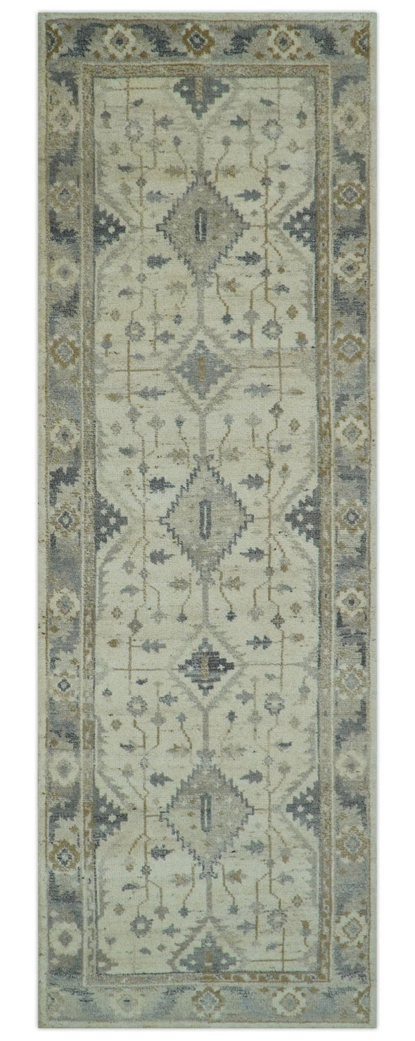 Custom Made Hand Knotted Ivory and Charcoal Traditional Tribal Natural Wool Area Rug, Kids, Living Room and Bedroom Rug