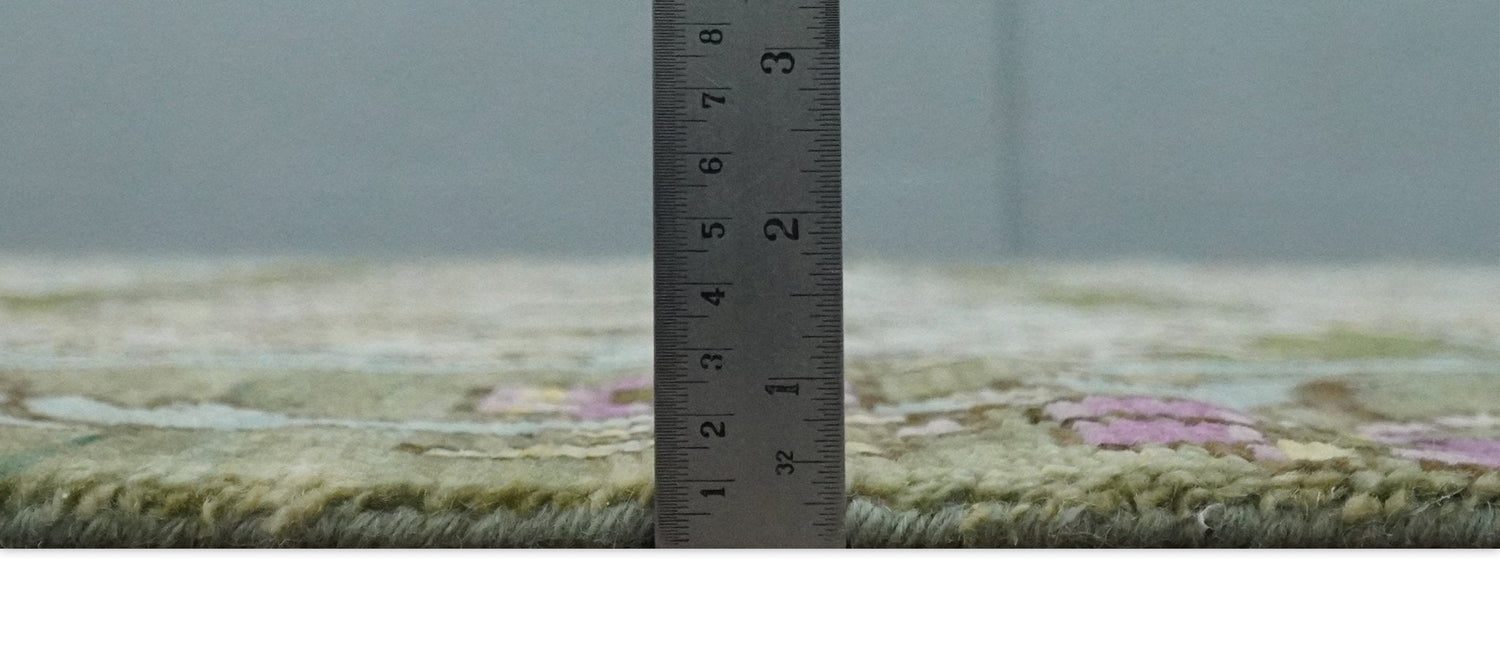 Custom Made Hand Knotted Ivory and Green Floral Traditional Antique Style Wool Area Rug